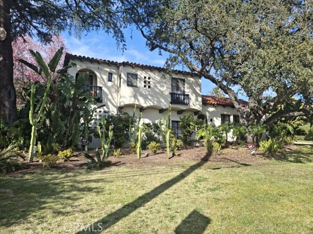 Tucked beneath the canopy of a magnificent 100+ year-old Engelmann Oak, 725 W Hillcrest known as the J.F. Pitt Home is a rare and romantic Spanish Colonial Revival designed in 1927 by renowned architect William Brandt, whose decade of residential study in Mexico profoundly shaped this early and iconic work. Designated a Historic Landmark and Mills Act–approved for substantial property tax savings, the home beautifully romanticizes California’s historic ties to Spain and Mexico. Grand curb appeal sets the tone, leading to an enclosed entryway and a richly detailed interior featuring an open-beam living room with original Spanish blue trim, extensive magnesite flooring, and a cozy fireplace. Vintage tile—original to the home—graces both upstairs bathrooms, while original iron hardware and a dramatic second-floor cantilever further reflect the home’s authentic architectural character. The spacious layout offers three bedrooms, two additional rooms currently used as an office, and three bathrooms, all thoughtfully arranged. Outdoors a large lot offers unlimited potential. Lush landscaping frames a romantic patio ideal for quiet mornings or intimate gatherings. This is a truly special home that, while ready for some updating, offers exceptional potential and a rare opportunity for a buyer to bring their vision to life and add their own personal touch.
