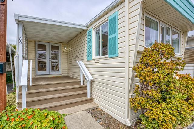 Move in by the Holidays!! Low space rent $3000/month for this adorable home thats been remodeled from top to bottom!! Absolutely the cutest beachy mobile home!Light & bright throughout,w/ neutral tones.The oversized front porch offers plenty of room to enjoy your morning coffee & visit w/ your neighbors.Thru the French doors you are greeted w/ new luxury vinyl flooring,shiplap board/battan walls,living room,office/cozy TV area,lots of possibilities.The kitchen offers white cabinets,a porcelain white sink,gas cooktop,white appliances & bar seating.A built-in bench offers extra storage, while enjoying a meal, or relaxing enjoying the distant oceanview, with Capitola Village just steps away.2 full bathrooms,2 generous size bedrooms,a stackable washer/dryer for convenience. The back yard has room for a table/chairs and gardening.The shed is included in the sale.This is a super cute home,move in & enjoy beachy living at its finest & very affordable too!Capitola Village is a 5 minute walk away,you can enjoy restaurants,great shopping,coffee shops,or just sit on the beach & tuck your feet in the sand!Landmark Gayles Bakery is a short distance away you can enjoy lunch,a pastry, or a cup of coffee w/ a friend.Come see this cutie! NO property taxes!!