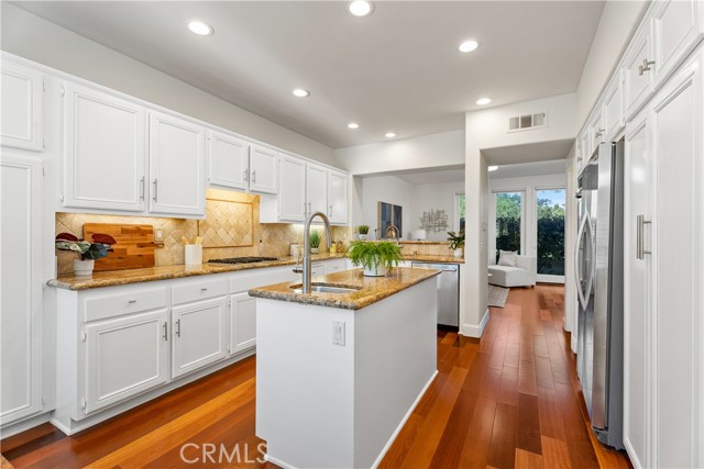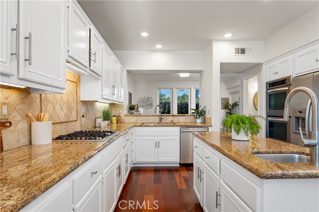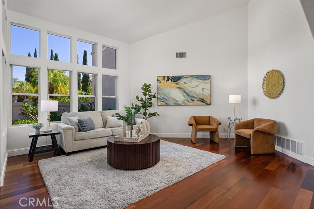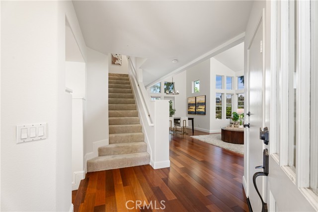 Nestled within the gated community of Cameray Heights, this light-filled 3-bedroom residence offers approx 2200 sq ft of spacious living with soaring ceilings and an open, airy floor plan designed for comfort and functionality. Impeccably maintained and thoughtfully refreshed with new interior paint, recessed lighting, Brazilian Cherrywood flooring throughout the entry, living room, family room, dining room and kitchen, plus brand-new carpet on the stairs and throughout the upstairs hallway and bedrooms. This home presents beautifully and is move-in ready. The oversized backyard is a standout feature — private, usable, and enhanced by scenic hills views, creating an ideal setting for outdoor entertaining or peaceful relaxation. with access to community greenbelt. Additional highlights include a 2-car garage with direct access and room for storage, guest parking within the gated community, and close proximity to the neighborhood pool and spa — conveniently nearby yet positioned for privacy. Ideally located within walking distance to Ocean Ranch Shopping Center, featuring Cinepolis Luxury Cinemas, Trader Joe’s, popular coffee shops, Curl Fitness, Angelina Bottega, boutique retail, and a variety of casual and fine dining options. Just minutes from world class beaches, resorts, biking and hiking trails and Laguna Niguel Regional Park, Wood Canyons Wilderness Park, top-rated schools, and major commuter routes. Well maintained and lightly lived in through the years, this home represents exceptional value in one of Laguna Niguel’s most desirable gated neighborhoods. A rare opportunity to own a spacious view property with a large yard and walkable lifestyle amenities.