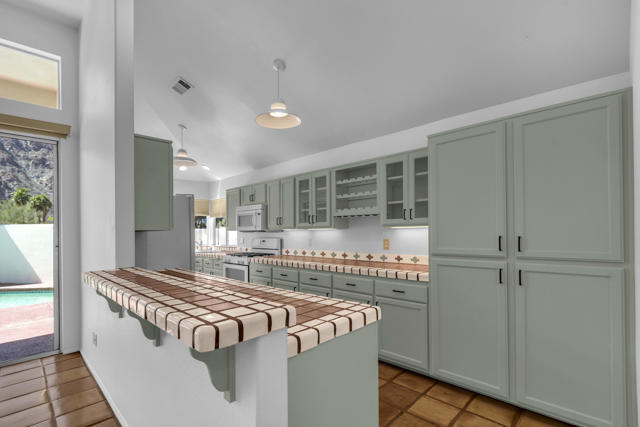 OPEN HOUSE: Sat (4/25) from 11 - 2.Desert Retreat with Santa Rosa Views in La Quinta Cove. Experience quintessential desert living in this beautifully maintained 3 Bedroom, 2 Bath home, Nestled in the sought-after La Quinta Cove Neighborhood. 6 Blocks to Level paths & challenging hikes.Step inside to find soaring ceilings and freshly painted interiors that enhance the home's bright and airy feel. The View is a 'wow' factor. Gleaming Saltillo Tile floors flow throughout, complementing the charming Mexican Tiles that bring warmth & color to the kitchen and bathrooms. The spacious Primary Suite features a cozy fireplace and direct access to the pool, spa & mountain views, creating a seamless indoor-outdoor connection. Unexpected delights include a working Atrium and separate Dining Room, adding character and versatility to the layout. Additional Highlights include Natural Gas service, located within the lower IID Utility District and No HOA Dues (or rules).Conveniently close to world-class Golf, Tennis, Pickle Ball, as well as all types of Dining, Shopping & Entertainment; This home captures the best of the Desert Lifestyle.Move-In Ready and full of Charm . Come see for yourself!