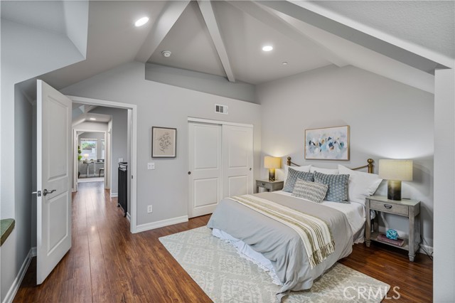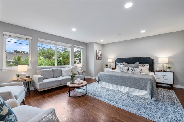 Welcome home! Beautiful three-story luxury townhome perfectly located in the heart of Pasadena. Nestled on a quiet, tree-lined street within a small gated community, this newer-built home offers both privacy and convenience. Within walking distance to Pasadena City College, banks, restaurants, and public transit, and just minutes from Caltech, the Metro Link Station, and Old Town Pasadena. The home features five spacious bedrooms and three and a half bathrooms with an open, light-filled floor plan. The modern kitchen includes granite countertops, a breakfast bar, and wood cabinetry, flowing into the living and dining areas—perfect for entertaining. Highlights include recessed lighting, Milgard windows, sound-reducing Gypcrete flooring, and a built-in security system. The master suite and two bedrooms are on the second floor, with two more bedrooms on the third. Enjoy a private backyard, two-car attached garage, tankless water heater, and low HOA dues in a well-maintained community.