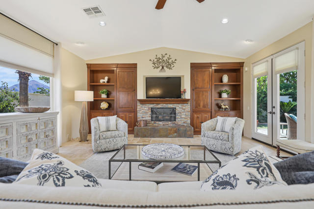 Welcome to the perfect desert retreat and an unbeatable lifestyle. AVAILABLE for APRIL! This stunning home offers 3-bedrooms, and 2 bathrooms in Rancho La Quinta Country Club. Features include breath taking views of the Santa Rosa mountains from the front and back yard. Step outside to your own private resort style oasis featuring a salt water pool, lush and tropical landscaping, privacy and serene, a beautiful patio area for your outdoor entertaining, along with a BBQ for those nights you want to enjoy the good life!. The Interior features an upgraded kitchen with granite countertops, stainless steel appliances, and a breakfast bar. The main Living room area boasts elegant Versailles- pattern travertine flooring, and features a beautiful focal point fireplace. The bedrooms are carpeted comfortably and furnished chic and stylish. The Master bedroom has a private en-suite with a soaking tub and shower, and upgraded with granite counters and travertine floors. This home is available for seasonal lease March and April 2026. Come enjoy the beauty of Rancho La Quinta Country Club for your next relaxing vacation! This home is ideally located in the heart of La Quinta. Walk or bike to Charming Old Town, and the famous La Quinta Resort, plenty of hiking trails, and close by are world renowned golf courses, you will find top rated restaurants & vibrant entertaining. Just minutes away you will discover El Paseo shopping district and the BNP Tennis tournament is just down the street.Call me for your private showing today! Lease terms are for 30 days!