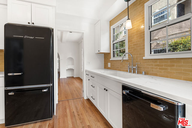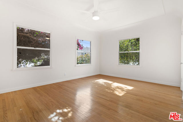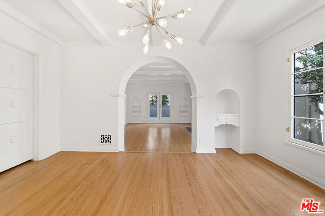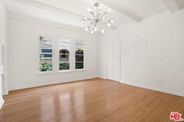 Welcome home to the charming, 3 bed, 2 bath lower unit of this classic Spanish revival duplex in the heart of Beverly Grove. The common areas all on a grand scale with gorgeous hardwood floors throughout. The living room with fireplace features a classic bookcase and front patio. Double doors open to an expansive bonus room along side of the living room. On thefar side there are steps that lead up to the dramatic formal dining room, the bright completely remodeled kitchen with all new appliances, the adjoining sunny breakfast room and roomy separate service porch with washer dryer and storage. The primary bedroom has a new en-suite bathroom with shower. The second hall bath features vintage tiles with a tub and seperate shower. Nice sized bedrooms and an abundance of closets complete this lovely home. Steps from 3rd St . Property is within minutes of Beverly Hills, Century City, The Grove and Hollywood. 25 minutes from DTLA,the beach or LAX. Walk to shopping & restaurants, Trader Joe's, Farmers Market just 5 minute walk away. Exterior recently painted different from photos shown