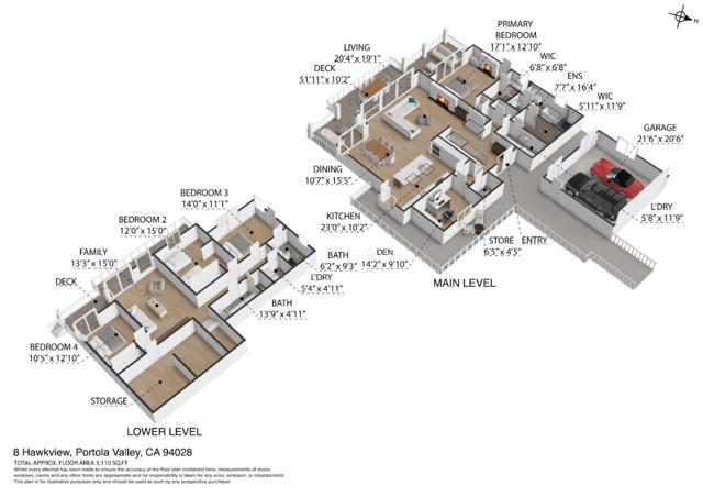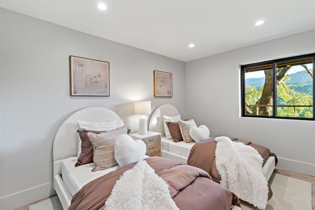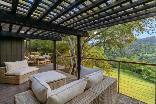 Completely remodeled in 2020, this exceptional Portola Valley Ranch home showcases stunning western views framed by a majestic oak overlooking rolling, verdant open space, creating a picturesque, tranquil setting. The dramatic living room is anchored by a stone fireplace wall and bathed in natural light, seamlessly connecting to the adjacent dining area with oversized glass doors that showcase the views and open to an expansive entertainment deck for indoor-outdoor living. The chefs kitchen features Quartzite countertops, a waterfall island with prep sink, wine cooler, bar seating, Thermador appliances, sleek cabinetry, and a full pantry, flowing effortlessly into the main living spaces. The main level also includes a luxurious primary suite with fireplace, breathtaking vistas, spa-like bath, a stylish den with fireplace, designer powder room and a well-appointed laundry room. The lower level offers a spacious family room, a private ensuite bedroom, two additional bedrooms, a hall bath, and a second laundry room, providing flexible living and guest space. Enjoy resort-style amenities exclusive to the Ranch community, including 2 pools, 3 tennis courts, fitness center, Ranch House, community garden, vineyard, orchard, duck pond, dog park, miles of scenic trails, top-rated schools.