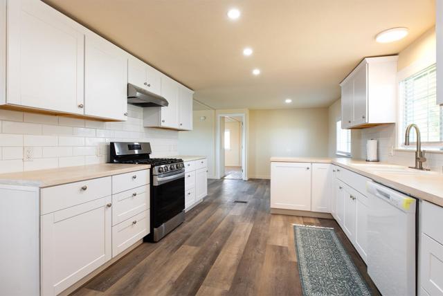 This is the home your clients have been waiting for situated in Trails Ends all age park! This park offers meandering roads and sprawling lots that offer green lawns, and areas to garden, lots of sun, and distant views. There's even a RV storage area for your use, and a utility room.This home has been thoughtfully, and tastefully remodeled with high end finishes. As you enter the home you are greeted with a shiplap wall, luxury vinyl flooring, recessed lighting & dual pane vinyl windows throughout. A new subfloor, foundation, earthquake bracing, new furnace, and water heater.The kitchen offers white quartz counter tops, dual porcelain sink, white cabinetry including a corner lazy susan. New stainless steel appliances too.The laundry/mud room is conveniently located off the kitchen with access door to the back deck/yard. Both bathrooms offer quartz counter tops, low flow toilets/showers, and white cabinetry. 2 bedrooms are located at one of the home house, while the primary suite is located on the other end, perfect for house guests, and/or a family. The oversized living room, could easily accommodate a family room as well. Other upgrades include new a new roof, gutters, exterior siding, decking and more. Enjoy the community garden too! This is a great park, don't miss this one!
