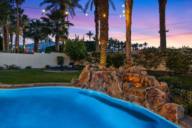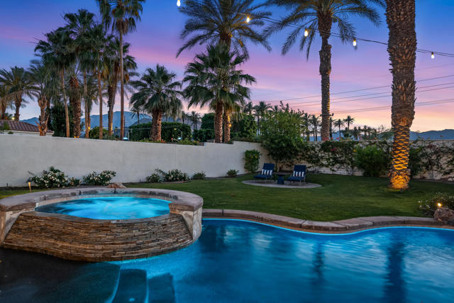 Price Improvement. This beautifully designed turnkey home in Mountain View Country Club offers the perfect blend of luxury, comfort, and convenience--ideal for full-time living or a seasonal desert retreat. Featuring 3 spacious ensuite bedrooms, 3.5 bathrooms, and a versatile bonus/game room, this residence is designed for effortless entertaining and relaxed living.The open-concept floor plan connects the updated kitchen, dining area, and inviting great room, creating a seamless flow for gatherings large or small. The kitchen shines with sleek quartz countertops, modern appliances, and counter seating at both the island and bar--ideal for casual dining. The wet bar has been beautifully updated with a stainless-steel sink, wine refrigerator, and a stand-alone Scotsman ice maker for the ultimate hosting experience.The primary suite is a true retreat with a private sitting area, spa-like bath, dual walk-in closets, and direct patio access. Two additional ensuite guest rooms are located on the opposite side of the home, providing privacy and comfort for family and visitors.Step outside to your private backyard oasis, complete with a PebbleTec pool and spa with waterfall feature, built-in BBQ, EVO hibachi grill, fire pit, and space for outdoor games--all surrounded by breathtaking Santa Rosa Mountain views. Enjoy your morning coffee in the front courtyard overlooking the 8th green, or unwind by the pool as the sun sets.This home is being sold fully furnished and move-in ready, including golf cart, bikes, pool table, ping pong table, Smart TVs, and more--everything you need to start living the resort-style desert lifestyle immediately.Additional upgrades include integrated surround sound, custom kitchen island, custom media cabinetry, epoxy garage floors, and a garage mini-split system.Located inside the prestigious Mountain View Country Club, residents enjoy access to an Arnold Palmer Signature golf course, tennis, pickleball, bocce ball, fitness center, clubhouse dining, and vibrant social events.This is resort-style desert living at its finest--move in, relax, and start enjoying all that La Quinta has to offer.