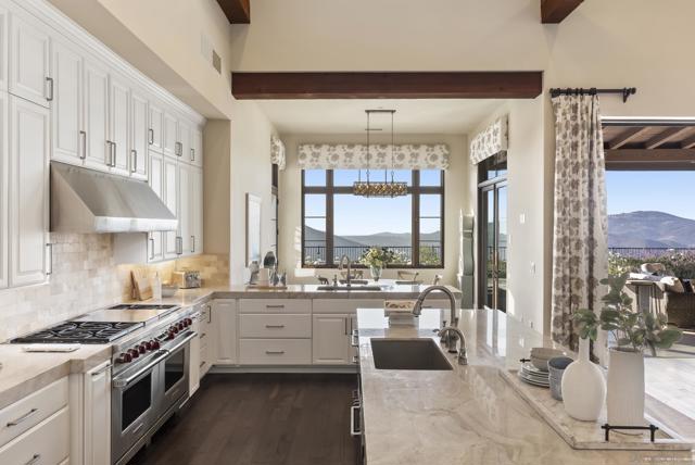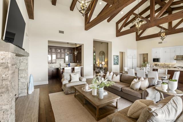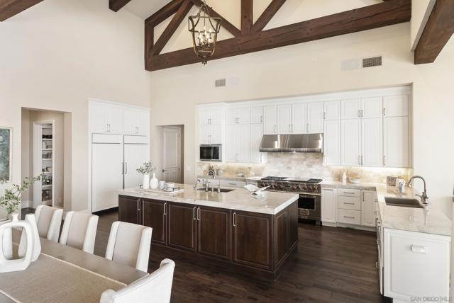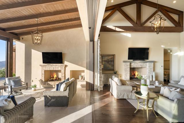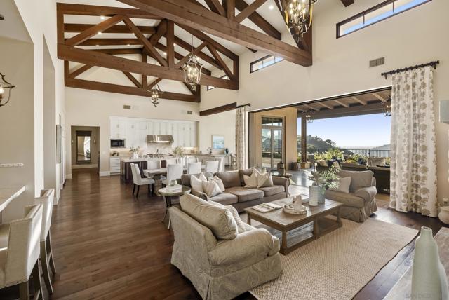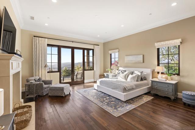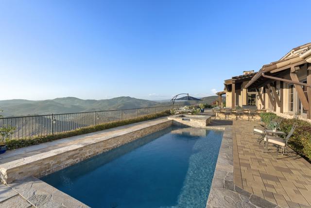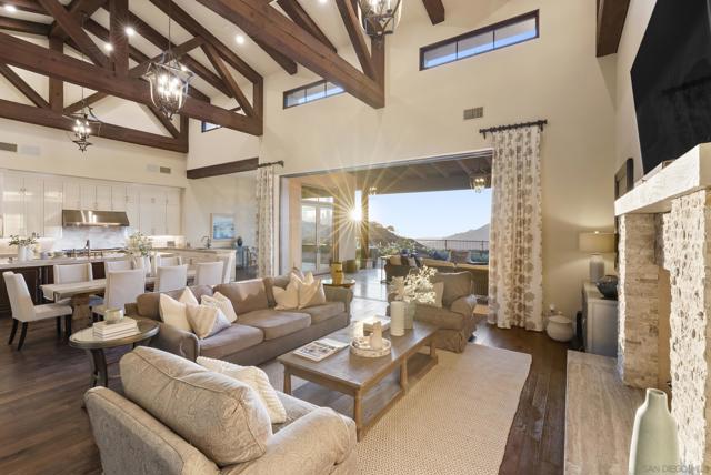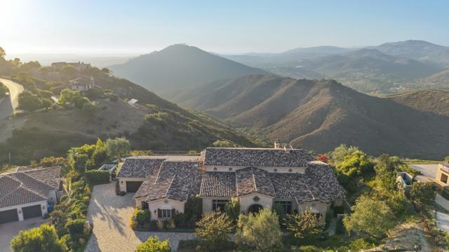 Intentional Living & Artfully Designed Mediterranean Estate! Seller will entertain offers between $3,950,000 to $4,150,000. Experience sophistication and modern elegance in this nearly new (2017) single-level custom estate within the prestigious guard-gated community of Cielo, Rancho Santa Fe. Perched at one of the highest points along the San Diego coast, this home offers panoramic mountain-to-ocean views and exceptional privacy. Featuring 4 bedrooms, 4 full and 2 half baths, plus an executive office/media room, this open-concept design showcases a spacious great room with disappearing glass doors, exposed antique beams, a stunning fireplace, and an entertainer’s wet bar with walk-in wine cellar. The chef’s kitchen boasts quartz countertops, a grand center island, walk-in pantry, and top-tier appliances. The primary suite is a serene retreat with patio access, a spa-style bath with soaking tub, dual vanities, and a boutique-style walk-in closet. The resort-inspired outdoor space features a custom pool and spa, fireplace lounge with TV, and a fully equipped outdoor kitchen with Lynx BBQ and granite bar seating—ideal for al fresco dining and sunset gatherings. Sustainably designed, the home runs on 100% solar power and features drought-conscious landscaping. Additional highlights include a 3-car garage with mahogany doors and a finished loft/attic. Enjoy Cielo’s luxury amenities—clubhouse, gym, pools, tennis, pickleball, playgrounds, and more—all within the acclaimed Rancho Santa Fe School District (Roger Rowe). This single-level estate boasts a modern architectural design with four bedrooms, four full baths, and two half baths. The executive office/media room invites productivity, while the expansive great room, with its seamless indoor-outdoor flow through disappearing glass doors, becomes the heart of gatherings. The artfully curated kitchen is a culinary dream, showcasing quartz countertops, a grand center island, a spacious walk-in pantry, and top-tier commercial-grade appliances, making it a perfect blend of style and functionality. Exposed antique beams and a stunning fireplace create an inviting atmosphere, complemented by an entertainer’s wet bar and a walk-in wine cellar, perfect for hosting intimate gatherings and unforgettable evenings. Retreat to the primary suite—a personal haven featuring direct patio access, a spa-inspired bath complete with an oversized soaking tub, dual vanities, and a boutique-style walk-in closet with custom built-ins. This sanctuary embodies tranquility and luxury. The true crown jewel of this estate is its outdoor oasis with its custom pool and spa that seemingly flow into the horizon, surrounded by a cozy, fireplace-warmed lounge equipped with a flat-screen TV. Beautiful landscaping, hardspacing and fully equipped outdoor kitchen, featuring a Lynx BBQ and granite bar seating for six, create an idyllic setting for al fresco dining, relaxing evenings or entertaining against the backdrop of stunning ocean and mountain vistas. Emphasizing both sophistication and sustainability, this home operates on 100% solar power and features drought-conscious landscaping, ensuring that luxury and efficiency go hand in hand. The property also features a 3-CAR garage with mahogany garage doors and fully finished versatile loft / attic. Every moment spent here is a step into a spa-like retreat, capturing the essence of the ultimate California lifestyle with views to Catalina Island on a clear day. Cielo in Rancho Santa Fe offers a vibrant, luxury lifestyle. Enjoy a full calendar of social activities - plus exceptional amenities including a community center, gym, clubhouse, tennis and pickleball courts, playgrounds, multiple pools, and courts for basketball and volleyball, all included with the HOA. This property is located in Rancho Santa Fe School District - Roger Rowe
