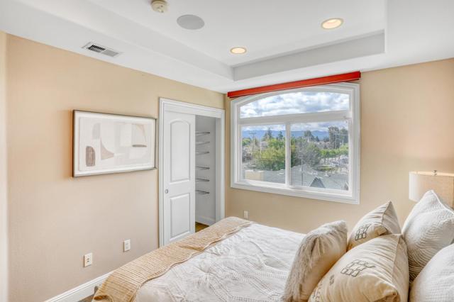 Beautiful luxury townhome in an exclusive community in the heart of Santa Clara. This bright and elegant residence features a modern open floor plan with soaring 9' ceilings, hardwood floors, and large windows that bring in abundant natural light. The gourmet kitchen offers stainless steel appliances, granite slab countertops, and a gas range, opening seamlessly to the spacious living and dining areas. Upstairs bedrooms feature cathedral and vault ceilings, crown molding, and custom closet organizers. The spacious primary suite includes a spa-like bathroom with dual sinks, jacuzzi tub, separate shower, and travertine floors. Private backyard with fruit trees, attached 2-car garage. Prime Silicon Valley location minutes to Apple, Santana Row, Valley Fair, and major tech campuses with easy access to Hwy 280. Low HOA $250/month. Move-in ready and a rare opportunity in a highly desirable central location.