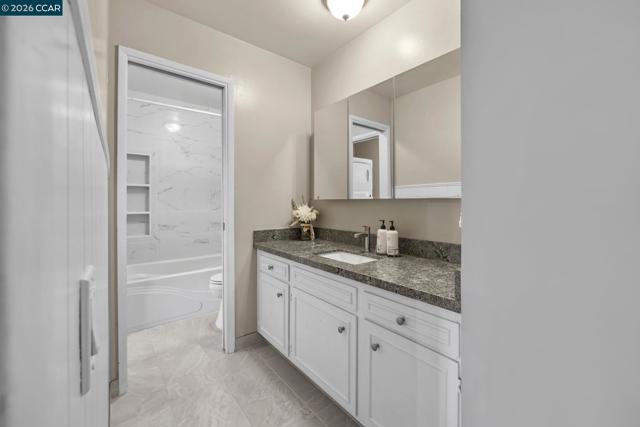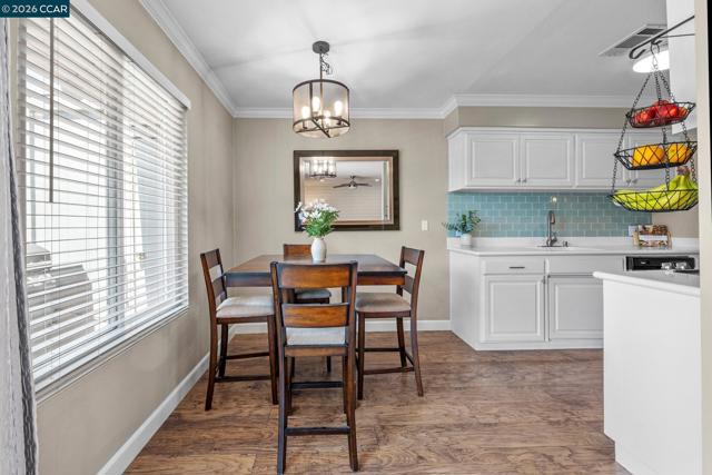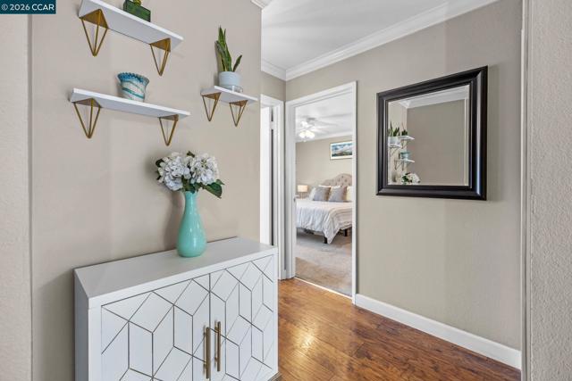 Welcome to this beautifully updated upstairs unit featuring 2 spacious bedrooms and 1 full bathroom. Inside you’ll find an open layout with tons of natural sunlight, beautiful hardwood floors and elegant crown molding throughout. The freshly remodeled bathroom adds a touch of luxury, while the in-unit laundry offers ultimate convenience. Both bedrooms include Elfa closet organizers, maximizing storage and functionality. Enjoy your morning coffee on the private balcony with peaceful views of the well-maintained grounds. This is one of the few units in the complex that offers this unique, serene view! Or take in the stunning scene of Mt. Diablo right from your front door. Conveniently located close to BART, this home is perfect for commuters or anyone seeking easy access to other parts of the Bay Area. It's also just around the corner from Oak Grove and Countrywood shopping centers, offering a variety of grocery stores, restaurants, coffee shops, and retail options. With ample guest parking and thoughtful interior touches, this home blends comfort, style, and convenience in one perfect package. Don’t miss out - schedule your tour today!