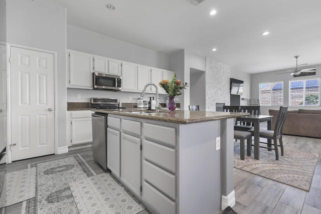 Welcome to this beautifully updated home in the desirable Sonora Wells community, currently one of the lowest priced homes in the neighborhood! Featuring tile flooring throughout and fresh interior and exterior paint, this home offers a clean, modern feel from the moment you walk in.Enjoy an open concept layout with a spacious kitchen flowing seamlessly into the living room, perfect for entertaining. The inviting living area is highlighted by a cozy fireplace, creating the perfect space to relax and unwind. The kitchen boasts a large island ideal for gathering, meal prep, and casual dining.This home offers 4 bedrooms and 3 bathrooms, along with a versatile office/den space that can easily adapt to your needs. The primary suite features an upgraded bathroom, beautiful walking shower, with dual sinks and a generously sized walk-in closet. A dedicated laundry room adds convenience to everyday living.Step outside to a private back patio, perfect for relaxing or hosting guests.Located in a low HOA community, Sonora Wells offers fantastic amenities including a pool, spa, BBQ areas, playground, and dog parks providing something for everyone to enjoy. Only a couple mins from I-10