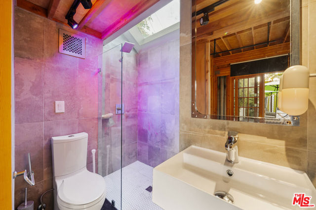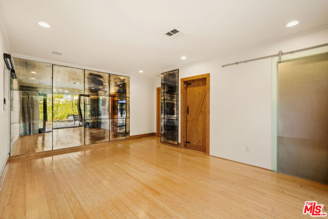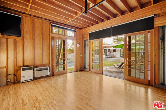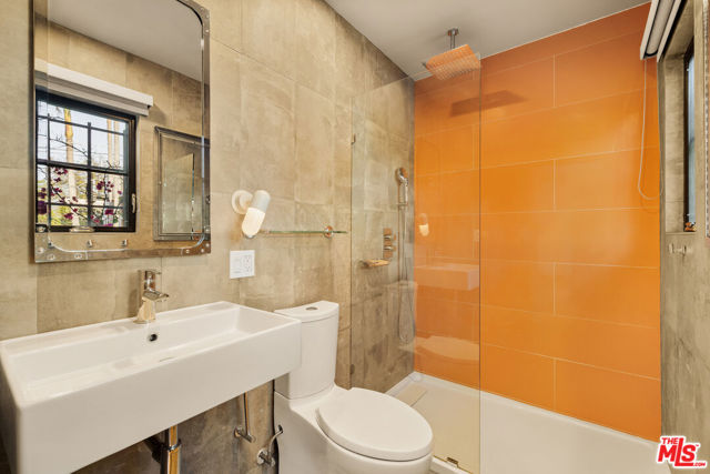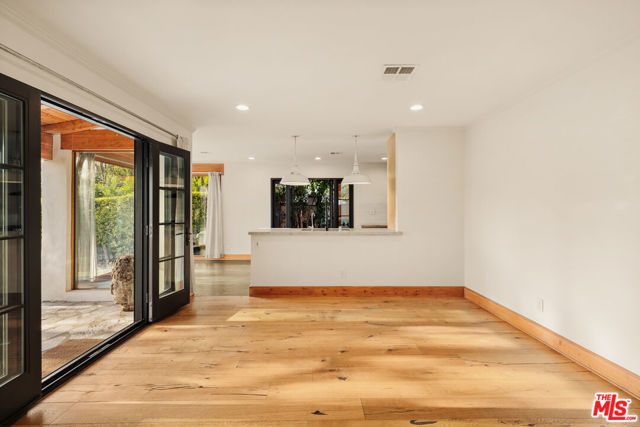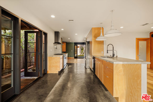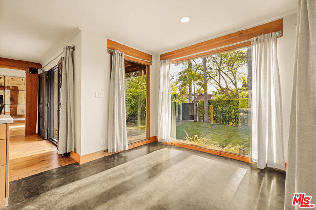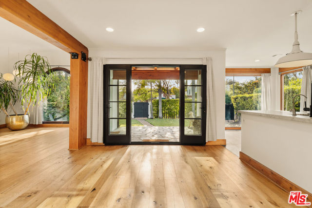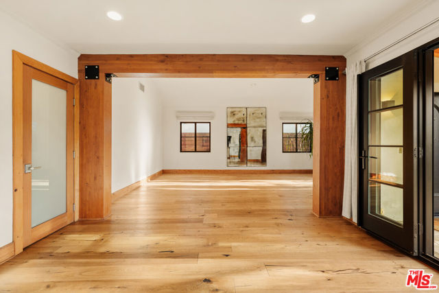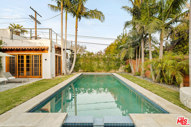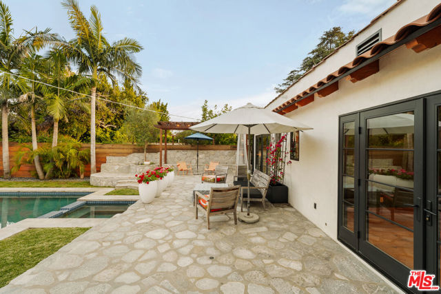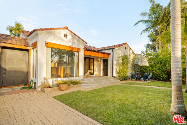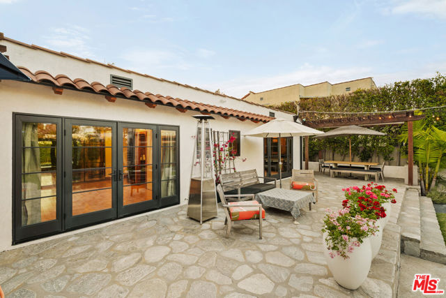Gated Redone Spanish on a prime WeHo-adjacent block. Single-level with arched windows, barreled ceilings, and hardwood floors throughout. Remodeled kitchen with high-end appliances, marble counters, and polished concrete floors. Private front patio with fire pit; den opens to a resort-style pool and dining area for true indoor/outdoor living. Both baths fully updated. Certified by renowned feng shui consultant Angi Ma Wong. Walkable to Melrose Design District, Croft Alley, and the best of West Hollywood.