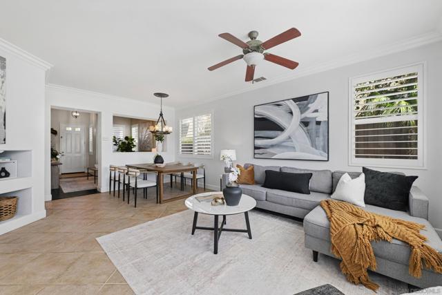 Location!! Location!! Rare, highly desirable floor plan & beautifully upgraded Monet Collection gem with Southern exposure! Modern comfort interior, low maintenance private backyard retreat with turf landscaping and a built in barbecue is perfect for entertaining and effortless California living. Enjoy stylish finishes, great room layout and loads of sunlight. The primary retreat has a dual sink, spa like bathroom and walk in closet. This move in ready property offers the ideal balance of sophistication, functionality, and an indoor- outdoor lifestyle. Walk to West View High School with easy access to shopping, dining, hiking and biking trails, the 56 freeway and more! Top rated school district and beautiful Del Mar Beaches are just a quick 20 min drive away! Wonderful Torrey Highlands neighborhood! Close to schools, shopping, hiking and bike trails, and the 56 freeway access. A single street neighborhood with two cul-de-sacs. Wonderful curb appeal and drought tolerant landscaping, stamped concrete patio in the backyard with built in barbecue area and privacy shrubs/ trees. This home is a must see and will not last! The home is beautifully staged!