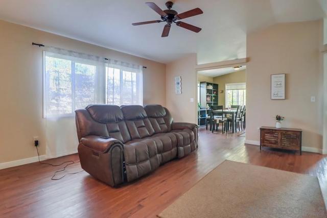Welcome to this beautifully maintained 3-bedroom, 2-bath manufactured home, offering 1,420 sq ft of comfortable living space. Built in 2004, this light and bright end unit features vaulted ceilings and stunning wood floors that add warmth and character throughout. The spacious kitchen is perfect for cooking and entertaining, offering ample counter space and storage. The versatile third bedroom makes an ideal office, craft room, or guest space. Both bathrooms are tastefully updated, and the open floor plan enhances the home's welcoming feel. Located in a secure, gated 55+ community with fantastic amenities including a clubhouse, pool, walking paths, and more. Enjoy peaceful, low-maintenance living with the benefits of an active and friendly neighborhood.