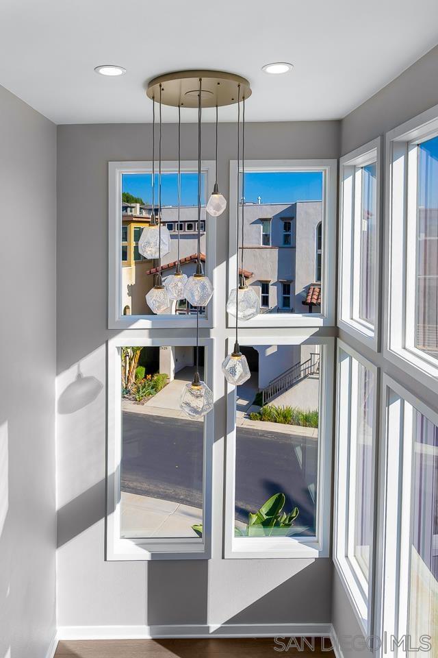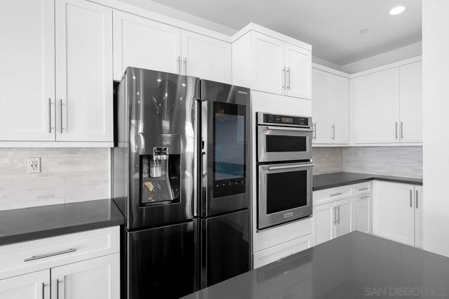 Welcome to this stunning detached single-family home on a prime corner lot at Apex, the pinnacle of Civita, offering expansive southern views over Mission Valley and a thoughtfully designed, multi-level floor plan filled with natural light. Upon entry, you are greeted by a unique split-level layout with stairs leading both up and down. The lower level features a versatile bonus room that can serve as an optional fourth bedroom, media room, or home office, along with a full bathroom, making it ideal for guests or flexible living arrangements. This level provides direct access to your private enclosed patio, a great space for outdoor entertaining! Also a conveniently attached two-car garage, and a driveway that allows parking for two additional vehicles, a rare and valuable luxury within the community. The main living level is designed for both everyday comfort and entertaining. A striking modern kitchen anchors the space, complete with top-of-the-line appliances, a smart refrigerator, custom leather cabinetry, and designer kitchen and dining room pendants that are sure to impress. The kitchen opens seamlessly to a spacious living room, alongside an open and airy study area. Step outside to the balcony to enjoy unobstructed palm tree views and Southern California sunshine. A convenient half bath completes this level. The home is thoughtfully appointed with a smart intercom system, a built-in soft-water system and subtle chandelier accents that complement the modern interior. The upper level offers a private retreat with all three bedrooms thoughtfully positioned for comfort and privacy. The primary suite features a pristine, modern bathroom showcasing a soaking tub set within a generously sized shower, dual vanities, and a large walk-in closet. Two additional bedrooms are located on this level, along with a detached full bath and a dedicated laundry room. Located within the award-winning Civita community, residents enjoy access to resort-style amenities including multiple pools, a state-of-the-art fitness center, parks, walking trails, a dog park, and breathtaking hillside and valley views. Civita is known for its modern architecture, vibrant atmosphere, and thoughtfully planned outdoor spaces that encourage both relaxation and community. Perfectly positioned in Mission Valley, this home offers one of San Diego’s most central locations with easy access to the 8, 163, 805, 15, and 5 freeways. Shopping, dining, and everyday conveniences are just minutes away, including Costco, Ralphs, Fashion Valley Mall, L.A. Fitness, Trader Joe’s, and more. Enjoy quick access to Mission Bay, San Diego’s beaches, and everything the city has to offer. This end-unit home combines elevated design, exceptional community amenities, and an unbeatable central location for truly modern and luxurious San Diego living.