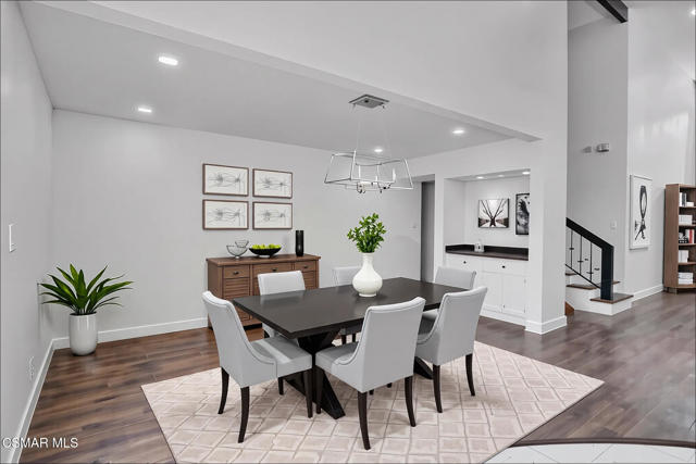 Welcome to this stunning 4-bedroom, 3-bathroom home, tucked away on a quiet and private cul-de-sac in one of Western Simi Valley's most sought-after communities. With breathtaking views, a sparkling pool and spa (re-plastered in 2025), and an entertainer's dream backyard, this home truly has it all. Step inside to a grand living space featuring soaring vaulted ceilings, recessed lighting, and a classic brick fireplace. A flexible bonus area off the living room is perfect for a formal dining room or home office. The spacious kitchen opens to a large, versatile area that can function as a dining room or family room--complete with a convenient wet bar and direct access to the backyard. Downstairs, a guest bedroom with pool views and a full bathroom offers comfort and convenience for visitors. The recently remodeled staircase leads to new laminate flooring that flows seamlessly through the upper hallway. Upstairs, the expansive primary suite showcases panoramic mountain views, while the two guest bedrooms feature vaulted ceilings, recessed lighting, and private access to a large shared balcony. The entertainer's backyard is a true retreat, offering a newly plastered pool and spa, brand-new artificial turf, a large covered patio, a built-in gas fire pit, and a side yard with real grass--perfect for pets or play. Save on utilities with 2024-installed solar panels and Tesla batteries, providing energy efficiency and peace of mind. Don't miss this rare opportunity to own a beautifully updated home with unmatched views, privacy, and lifestyle amenities in a prime Simi Valley location.