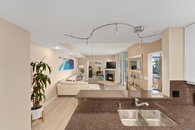 Bright, Quiet, and Updated—Refined Downtown Living at Discovery Welcome to Unit 701 at Discovery in Cortez Hill, a beautifully refreshed corner residence offering natural light, interior-facing tranquility, and modern style. Situated on the quiet side of the building, this 2-bedroom, 2-bath home enjoys peaceful courtyard and soft city views through floor-to-ceiling windows and French doors that open to a private balcony. Recent upgrades include brand new luxury vinyl plank flooring, fresh designer paint, and newly painted cabinetry that gives the space a clean, contemporary feel. The open-concept living and dining area features a cozy fireplace and a built-in mini wine fridge, while the functional layout includes an in-unit washer/dryer, assigned parking, and a separate storage unit. The spacious primary suite includes a generous walk-in closet with custom built-ins, and both bedrooms are comfortably sized with great natural light. Discovery offers full-service amenities with a recently remodeled rooftop pool and spa, upgraded fitness center with new equipment, stylish lounges, firepits, and 24-hour concierge and security. Residents also benefit from a professionally managed, well-established HOA and a yearly renewable guest street parking permit from the City of San Diego. Located in the peaceful, tree-lined neighborhood of Cortez Hill—close to Little Italy, Balboa Park, and downtown hot spots—this move-in-ready home offers the best of urban living with a sense of calm. Welcome to Discovery at Cortez Hill, where modern comfort meets refined downtown living in this beautifully updated 2-bedroom, 2-bath corner residence. Located on the 7th floor, Unit 701 features brand new luxury vinyl plank flooring, fresh designer paint, and a light-filled layout that offers both style and functionality. Enjoy floor-to-ceiling windows, a private balcony with peaceful city and courtyard views, and a split-bedroom design ideal for privacy or remote work. The spacious primary suite includes a generous walk-in closet with custom built-in shelving, perfect for streamlined storage. Discovery is a full-service luxury building offering a recently renovated amenities floor, including a resort-style rooftop pool and spa, upgraded fitness center with new equipment, stylish lounge areas, and firepits for relaxed evening gatherings. With 24-hour concierge, security, and secure parking, every detail is designed for convenience and peace of mind. Located in the charming, tree-lined neighborhood of Cortez Hill, you’re just minutes to Little Italy, Balboa Park, and the vibrant energy of downtown. Move-in ready with modern upgrades—discover elevated urban living at Discovery.