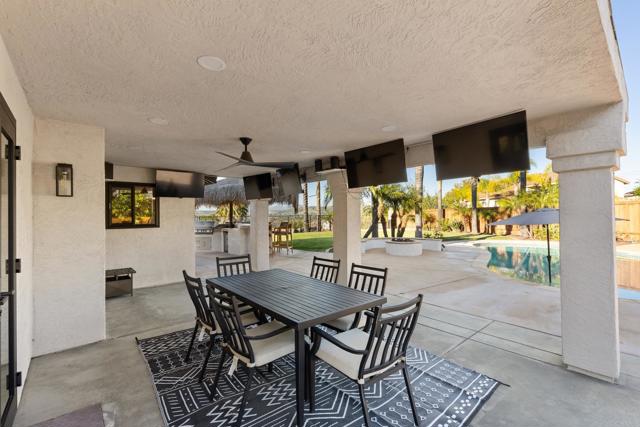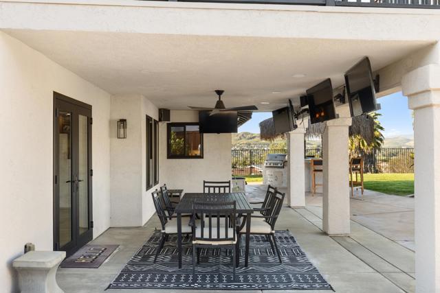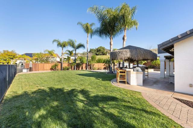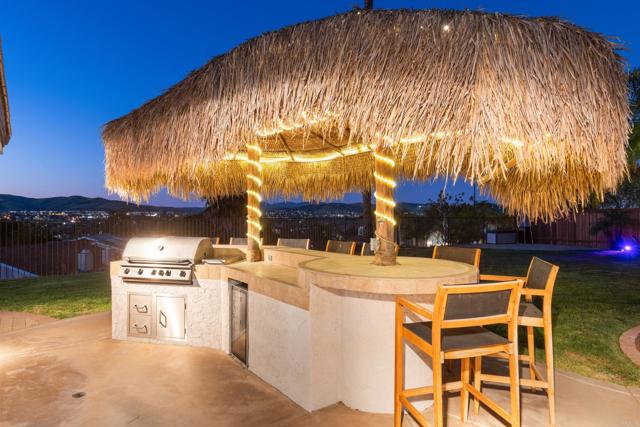 NO HOA! SANTEE STUNNER ON NEARLY HALF AN ACRE WITH VIEWS! Tucked at the end of a quiet cul-de-sac on a desirable corner lot, this beautifully upgraded home is an entertainer’s dream featuring sweeping panoramic hillside views and a resort-style backyard built to impress with a solar-heated pool and spa, gas fire pit, built-in BBQ, covered patio, and FIVE outdoor TVs—perfect for indoor-outdoor living, hosting gatherings, or enjoying game day in your own private oasis with fruit trees. The home also offers fully paid solar and over $100K in recent upgrades, including a new roof, dual-pane windows, updated flooring, newer A/C, and fresh interior and exterior paint. Step inside to soaring ceilings and a spacious chef’s kitchen featuring granite countertops, a large center island, double ovens, and stainless-steel appliances, all opening to bright, open-concept living spaces filled with natural light. The highly desirable floor plan includes a full bedroom and bathroom on the main level, ideal for guests or multigenerational living. Upstairs, the luxurious primary suite offers a private view balcony, spa-like bathroom with an oversized soaking tub, and a bonus room perfect for a home office, nursery, or flex space, plus two additional bedrooms. Additional highlights include RV parking, an oversized garage, energy-efficient features, and two whole-house fans. This rare property offers space, privacy, modern upgrades, and true Southern California lifestyle living.