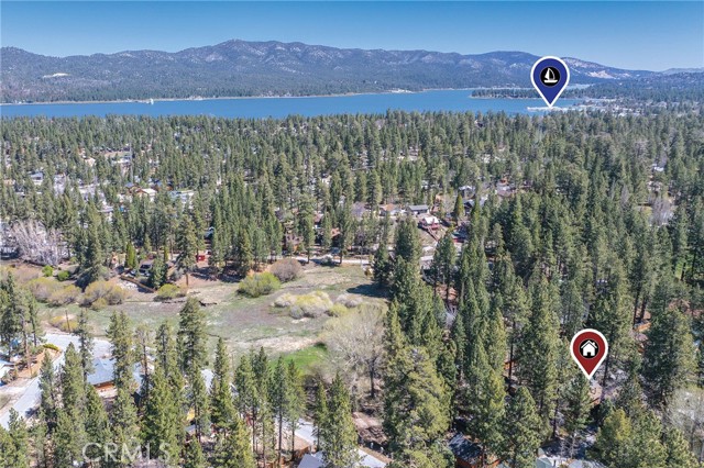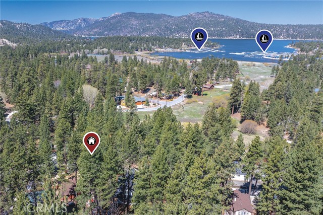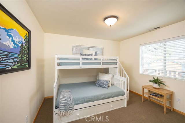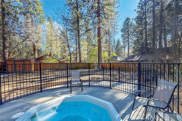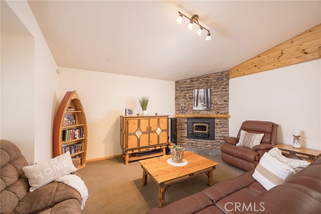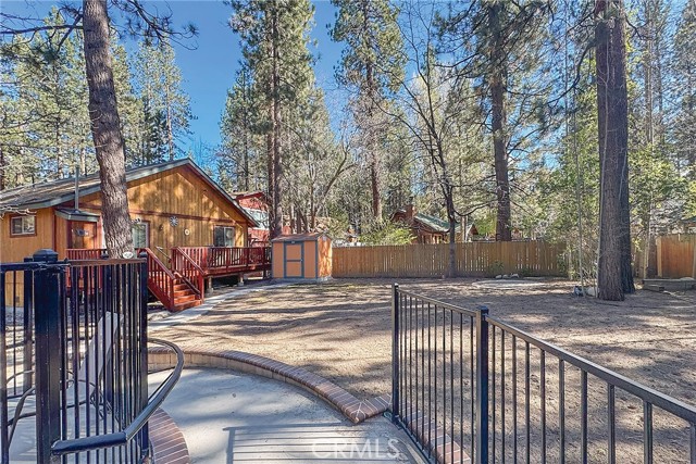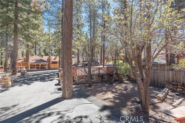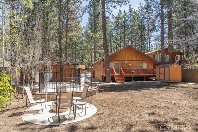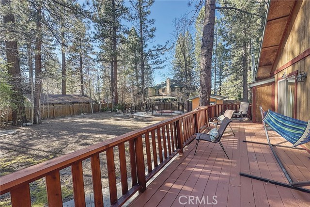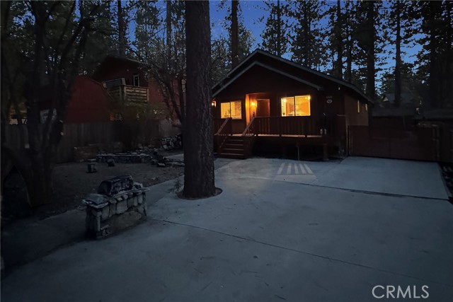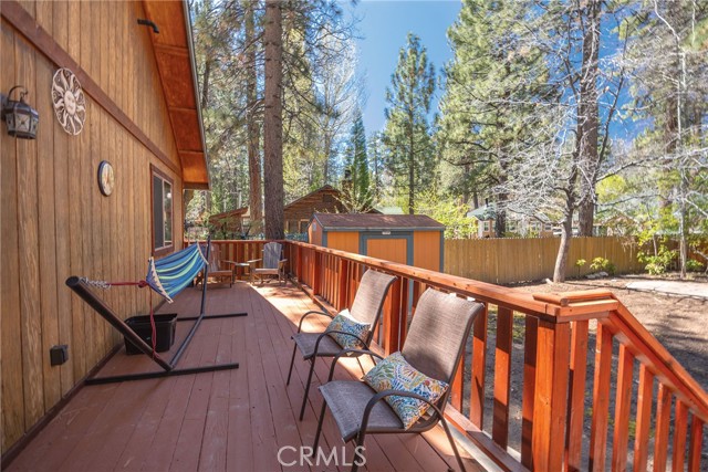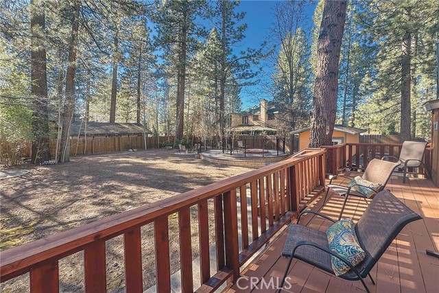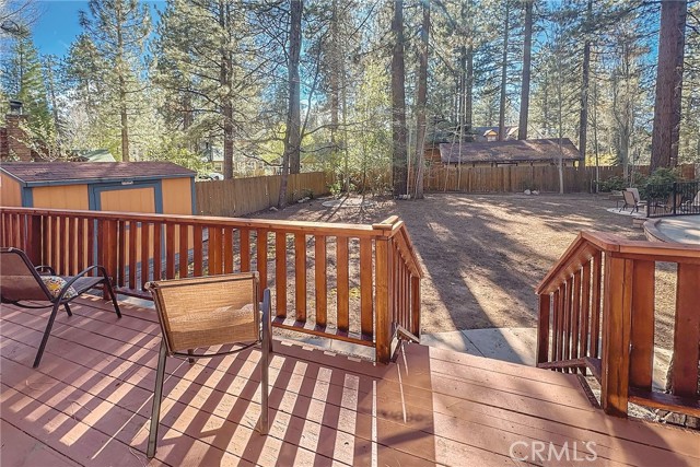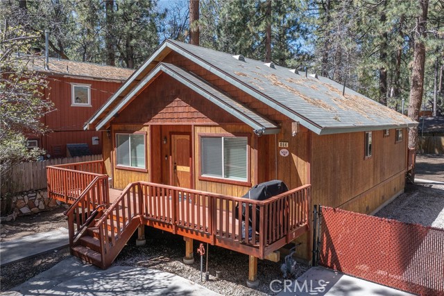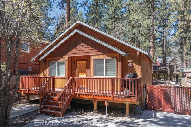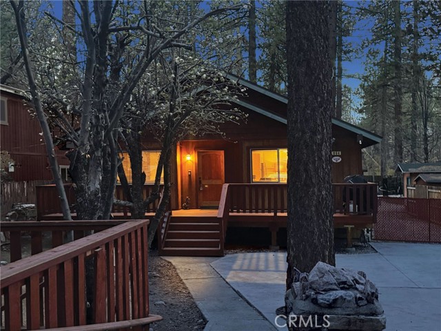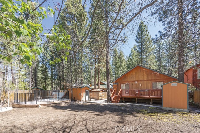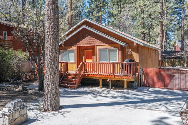 This inviting 1,360 sq ft single-story Big Bear Lake home sets the stage for days that begin with adventure & end with connection—“Lake Time,” first tracks on the slopes, & evenings that draw everyone back together. Set on an expansive 11,000+ sq ft, 150' deep llot, thfe hard-to-find fenced backyard offers space to spread out & enjoy being together, from kids & dogs playing to a fun game of horseshoes or soaking in the spa under Big Bear’s spectacular, star-filled night skies. The front deck welcomes you, while the rear deck extends the living space outdoors, creating moments to gather, relax & take in the setting. Inside, everything comes together in the bright, flowing Great Room—the kitchen becomes the hub for cooking & catching up, people gathering at the dining bar as memorable meals are created, with fireside conversation, movies, & board games all part of one shared space. The kitchen features stainless appliances, granite counters, an expansive dining bar, & a pantry cabinet. Anchoring the space is the stacked-stone fireplace with a wood/stove insert—so inviting on snowy evenings. The bedrooms offer comfortable spaces to step away & recharge, while one room adds a playful touch with bunk beds & trundle—perfect for sleepovers, extra guests, or fun, memory-filled Big Bear nights. The primary suite offers dual sinks, a tub/shower combo with glass doors, & direct access to the rear deck & yard, creating a natural indoor-outdoor connection. Both bathrooms feature tub/shower combos, tumbled travertine vanity tops, & recent updates include fresh interior paint & newly stained decking. Dual-pane windows, central heat, & the laundry area add to everyday comfort. The lot also offers room to grow, with potential for a future garage and/or ADU. The property has exceptional parking—featuring a rare street-level asphalt platform plus an expansive concrete driveway with pull-through access through a double gate, offering flexibility for multiple vehicles, boat or RV parking, & sunny exposure that helps with snow melt. Located just minutes from Big Bear Lake, the Village with its shops & restaurants, marinas, Alpine Coaster, Snow Summit & Bear Mountain, a nearby day-use park, & National Forest access with the road to the largest lodgepole pine in California just down the street, this home offers a balance of connection & setting all centered around the moments that make time here feel special. Well-suited for full-time living, a mountain escape, or STR potential