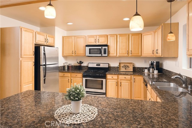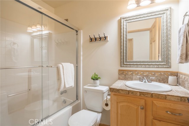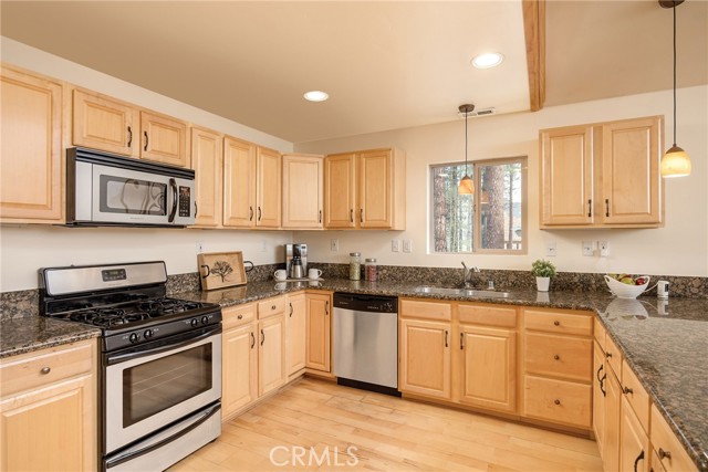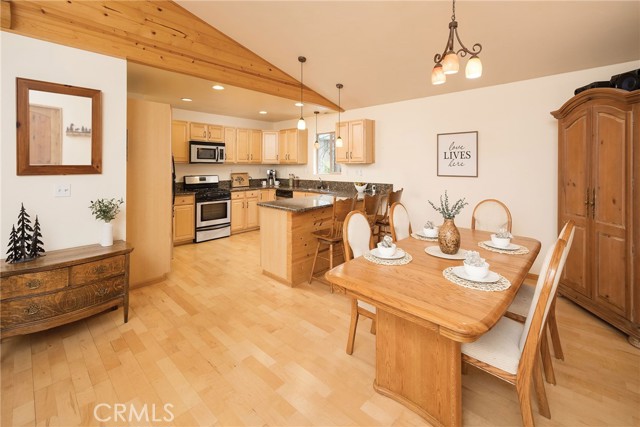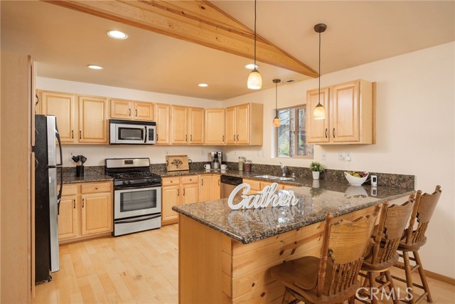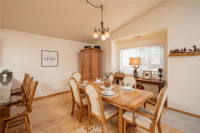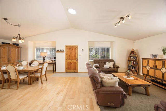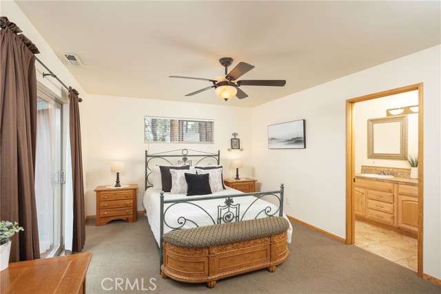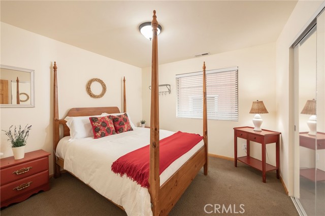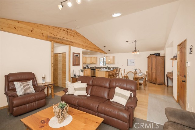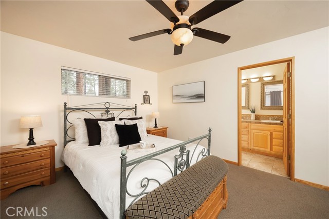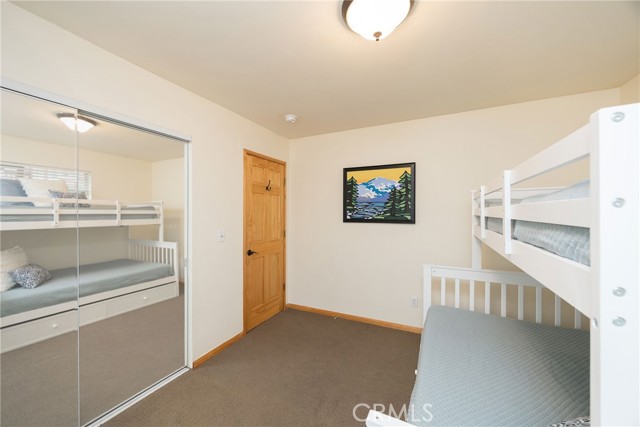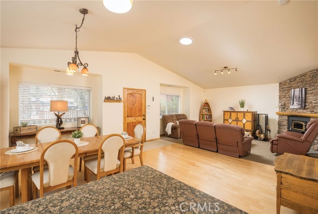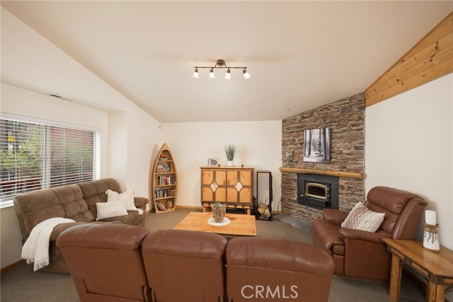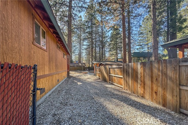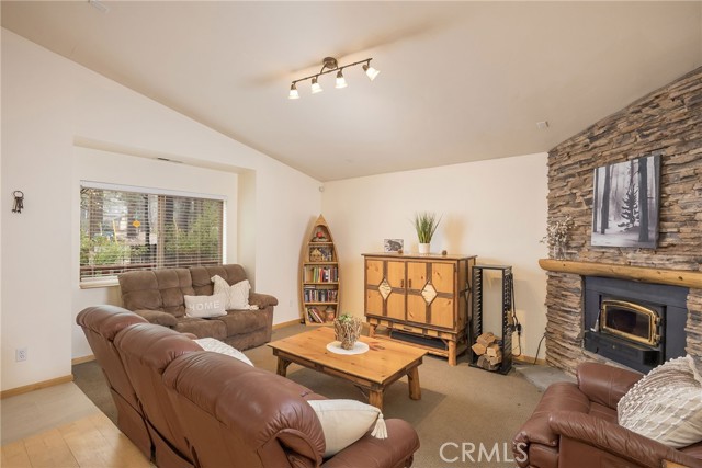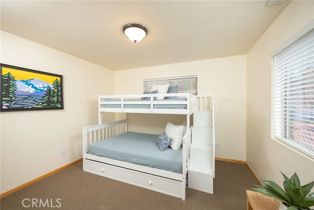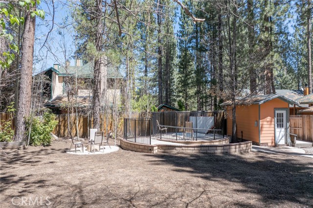 This inviting 1,360 sq ft single-story Big Bear Lake home sets the stage for days that begin with adventure & end with connection—“Lake Time,” first tracks on the slopes, & evenings that draw everyone back together. Set on an expansive 11,000+ sq ft, 150' deep llot, thfe hard-to-find fenced backyard offers space to spread out & enjoy being together, from kids & dogs playing to a fun game of horseshoes or soaking in the spa under Big Bear’s spectacular, star-filled night skies. The front deck welcomes you, while the rear deck extends the living space outdoors, creating moments to gather, relax & take in the setting. Inside, everything comes together in the bright, flowing Great Room—the kitchen becomes the hub for cooking & catching up, people gathering at the dining bar as memorable meals are created, with fireside conversation, movies, & board games all part of one shared space. The kitchen features stainless appliances, granite counters, an expansive dining bar, & a pantry cabinet. Anchoring the space is the stacked-stone fireplace with a wood/stove insert—so inviting on snowy evenings. The bedrooms offer comfortable spaces to step away & recharge, while one room adds a playful touch with bunk beds & trundle—perfect for sleepovers, extra guests, or fun, memory-filled Big Bear nights. The primary suite offers dual sinks, a tub/shower combo with glass doors, & direct access to the rear deck & yard, creating a natural indoor-outdoor connection. Both bathrooms feature tub/shower combos, tumbled travertine vanity tops, & recent updates include fresh interior paint & newly stained decking. Dual-pane windows, central heat, & the laundry area add to everyday comfort. The lot also offers room to grow, with potential for a future garage and/or ADU. The property has exceptional parking—featuring a rare street-level asphalt platform plus an expansive concrete driveway with pull-through access through a double gate, offering flexibility for multiple vehicles, boat or RV parking, & sunny exposure that helps with snow melt. Located just minutes from Big Bear Lake, the Village with its shops & restaurants, marinas, Alpine Coaster, Snow Summit & Bear Mountain, a nearby day-use park, & National Forest access with the road to the largest lodgepole pine in California just down the street, this home offers a balance of connection & setting all centered around the moments that make time here feel special. Well-suited for full-time living, a mountain escape, or STR potential