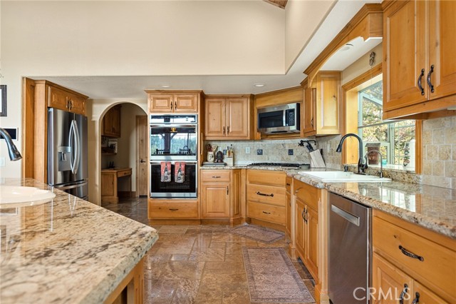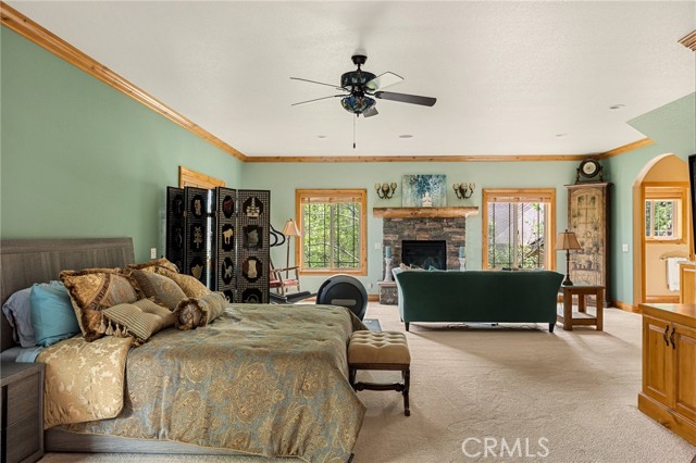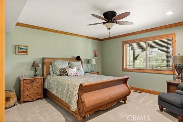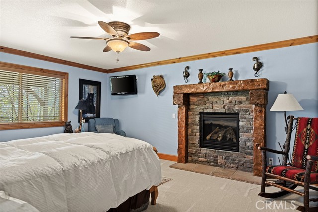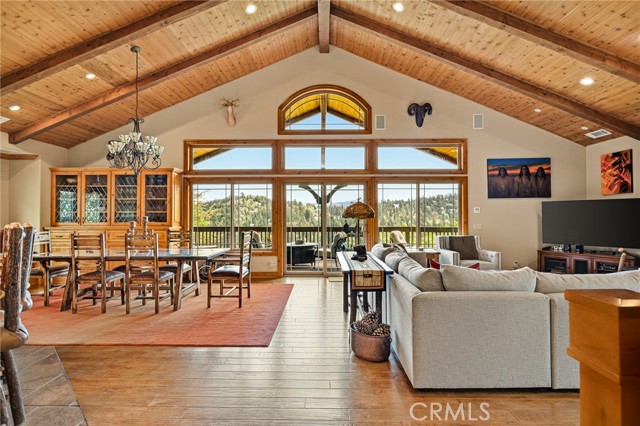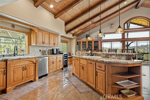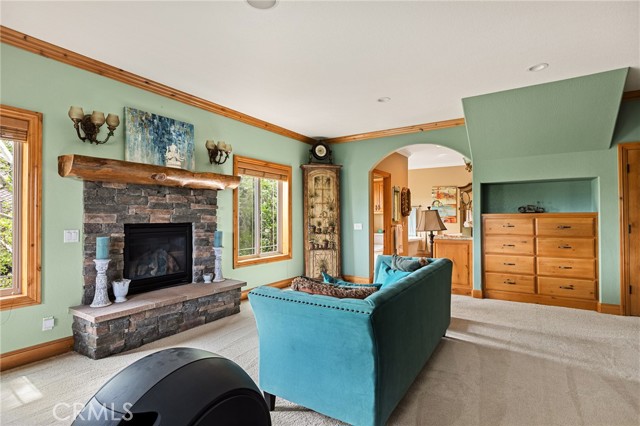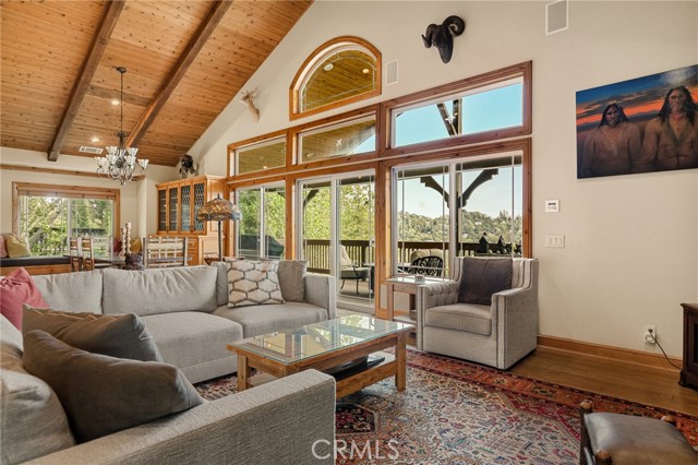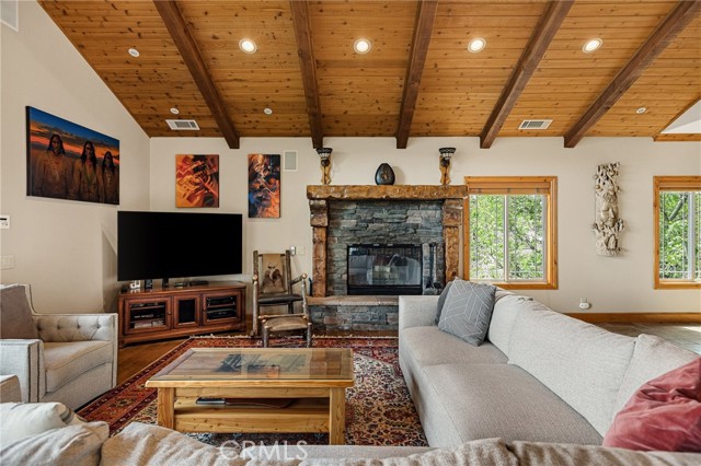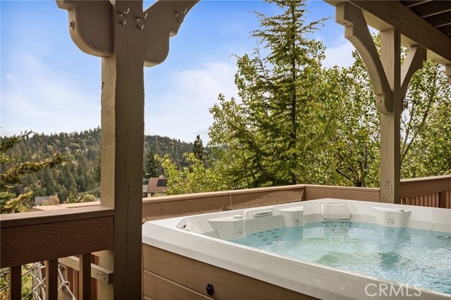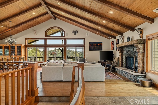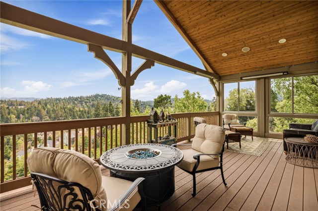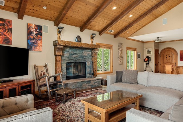 Welcome to this spectacular furnished, turnkey view home located in Lake Arrowhead. This custom home offers 3 bedrooms, 3.5 baths, and an expansive 3,549 sq. ft. open floorplan designed for comfort and entertaining. The main level features a chef’s kitchen with newer stainless-steel appliances, granite countertops, garden window, center island with breakfast bar, wine fridge, plenty of cabinets for storage, and walk-in pantry. The large dining room includes a window seat, while the living area showcases a wall of glass capturing beautiful views, a high cathedral wood-beamed ceiling with recessed lighting, and a wood-burning granite fireplace. A half bath is also conveniently located on this level. Additional features include, two coat closets, custom woodwork throughout, built-in desk area, hard wood floors, electronically controlled lighting and water shut-off systems. Level entry from the street leads to a 2-car garage with direct access. The second level down offers a spacious master suite with its own living area, built-in office space, granite fireplace, double sinks, walk-in shower, jetted tub, and built-in dresser, 2 large walk-in closets, one with a dressing area. This level also includes a laundry room with sink, washer and dryer, additional storage, and access to a private deck. The third level features two additional suites, each with walk-in closets, providing privacy and flexibility for guests. Outdoor living includes a large main deck with expansive views and a hot tub, ideal for relaxing or entertaining. The home offers two gas fireplaces and one wood-burning fireplace. Additional highlights include stainless kitchen appliances, washer and dryer, two tankless water heaters, and two newer heater/AC units with a humidification system (all replaced in 2020). An electronically controlled system allows you to shut off house water and drainpipes for added peace of mind while away. Property includes a boat dock located at MBM 13 – Slip 13 for the full exclusive Lake Arrowhead experience.