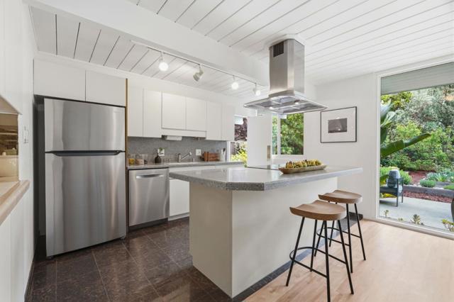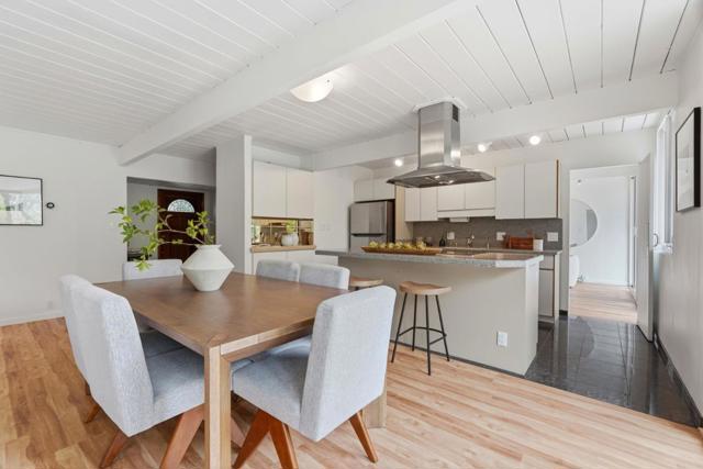 A rare opportunity to own a beautifully updated Eichler, nestled on a spacious corner lot in a quiet court in the highly desirable Panama Park neighborhood. This classic blends mid-century modern charm with thoughtful upgrades and tons of natural lighting throughout. This ultra private home showcases iconic architectural details including warm mahogany paneling, clean lines, radiant heat, and seamless indoor-outdoor flow. Updated kitchen and bathrooms, fresh interior/exterior paint and new flooring. Designed for comfort and efficiency, the home includes owned solar panels with a Tesla inverter, insulated and replaced exterior walls, and an insulated foam roof over tar and gravel. Additional improvements include solid wood interior doors, motorized and manual rolling shades, sealed rolling garage doors, and a finished garage with laminate tile flooring. The yard features water-wise landscaping, offering beauty with low maintenance, and ample space for entertaining, relaxing, or future possibilities. A truly stunning Eichler masterpiece minutes away from award winning schools, including Stocklmeir Elementary, Cupertino Middle & Fremont high. Prime location minutes away from Panama Park and less than 2 miles to Apple Park, Cupertino Main Street, and the bustling downtown Sunnyvale.