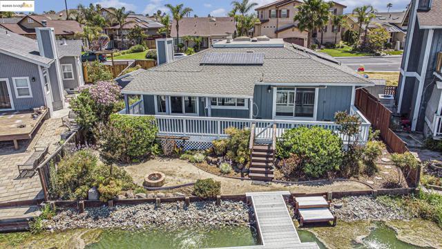 Single-Story Lakefront Home with Mt. Diablo Views and a Dock! Welcome to this charming, light-filled lakefront retreat offering breathtaking views of Mt. Diablo and unforgettable sunsets. This 3 Bed / 2 Bath home blends rustic charm with modern updates, featuring hardwood floors and solar tubes. The spacious Kitchen includes ample cabinetry, newer quartz countertops, an updated stove, and Breakfast Bar—perfect for preparing meals with a view. Cozy up to the fireplace and entertain with ease with your built-in bar. The Primary Suite offers direct access to the back deck, where you can enjoy peaceful evenings and vibrant sunsets from bed or step outside to soak in the serene lakeside ambiance. Additional highlights include fresh paint in beds and baths, a whole-house fan, water filtration system, RV parking, and a custom-built shed. The large private Dock is ideal for launching your electric boat, paddleboards, kayaks, or canoes—just steps from your covered deck. Don't miss your chance to live the lakefront lifestyle with panoramic views and everyday comfort in this truly special home!