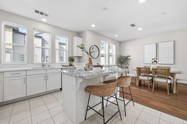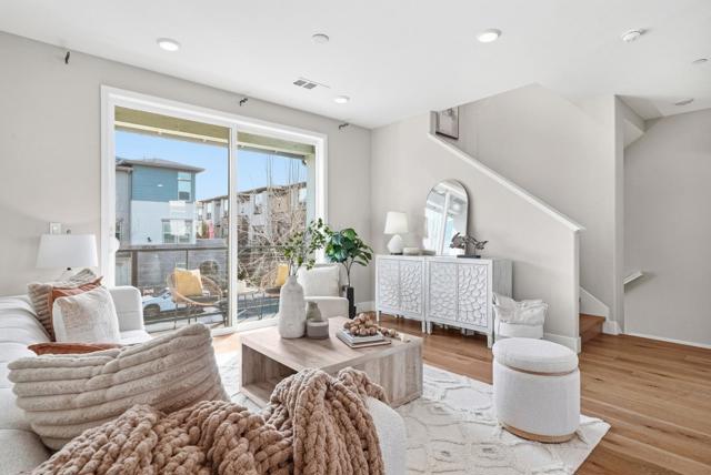 Welcome to this charming 2018-built home featuring two suites in the sought-after The Vale community of Sunnyvale. The entry level offers a welcoming foyer with a closet and direct access to the attached garage. The second level showcases a bright, open floor plan filled with natural light. The living room includes a sliding door to a private balcony and flows seamlessly into the dining area. The gourmet kitchen features a center island with breakfast bar, beautiful countertops and backsplash, modern appliances, and ample white cabinetry. A nearby half bathroom adds convenience. On the third level, the primary suite is located at the front of the home and offers a spacious bedroom with large windows. The en-suite bathroom includes a double vanity sink, large mirror, stall shower, and walk-in closet. A second suite sits across the hallway and features a bathroom with a shower over tub. Enjoy a prime location close to restaurants and grocery stores including Costco, Whole Foods, and Target. Near major tech companies such as Google, Microsoft, Apple, and Amazon, with easy access to Highway 101, Central Expressway, and Lawrence Expressway. Do not miss this great opportunity!