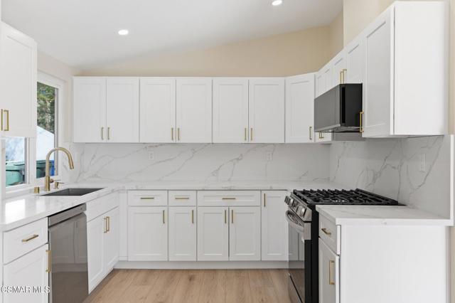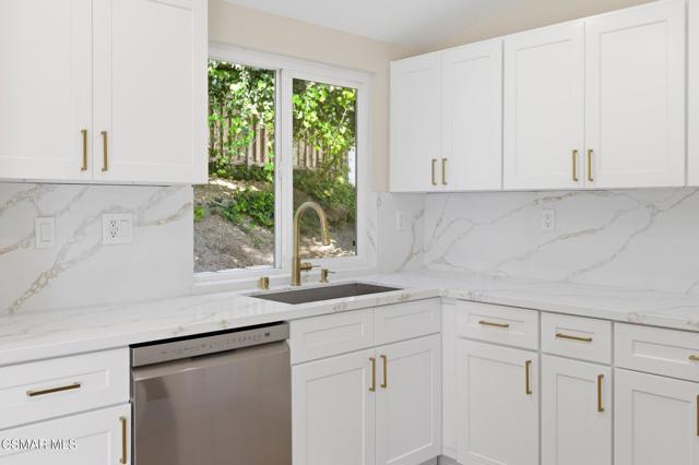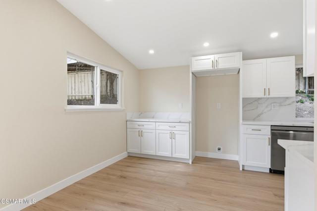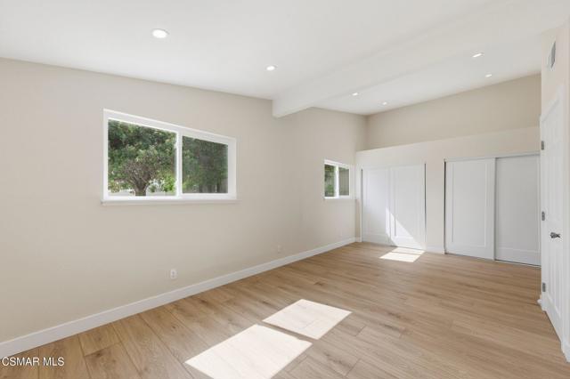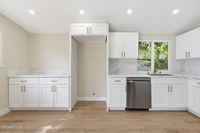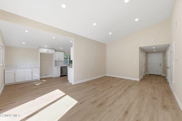 Nestled in the heart of Thousand Oaks, this beautifully updated corner-lot view home offers 4 bedrooms, 2 bathrooms, and sits on an expansive 12,000+ sq ft lot with potential for an ADU and possible RV access.Step inside to a freshly painted interior featuring a spacious living room with soaring vaulted ceilings and abundant natural light. The remodeled eat-in kitchen showcases new appliances, updated countertops, a stylish backsplash, added cabinets/counter space and a stainless sink--perfect for everyday living and entertaining. New luxury vinyl flooring runs throughout the home, adding both durability and modern appeal.Three generously sized secondary bedrooms share an updated full hall bathroom. The expansive primary suite was thoughtfully enlarged (originally two bedrooms) to create a private retreat complete with a sitting area, high ceilings, recessed lighting, plenty of closet space, and a beautifully updated en-suite bathroom.Outside, enjoy a lush and private .29-acre yard with scenic views, mature landscaping, and ample shade. The large patio provides the ideal space for outdoor dining and entertaining, while the oversized lot offers plenty of room for a pool or future ADU.Additional highlights include a direct-access 2-car garage with plenty of room for storage, a brand-new roof, freshly painted exterior, and updated landscaping.Centrally located near shopping, dining, top-rated schools, and Paige Lane Park, this home blends comfort, convenience, and style.