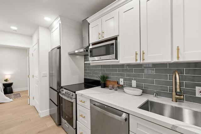 Welcome to this rare and exceptional opportunity to own a completely rebuilt Mediterranean style residence situated in the highly desirable heart of downtown Belmont. Boasting a brand new 768 SF addition, this home has been meticulously redesigned from the studs up to offer the modern comfort of new construction while retaining timeless character. The main residence features a bright, open floor plan accentuated by high ceilings, skylights, and hardwood flooring throughout the living areas. The chef inspired kitchen serves as the heart of the home, showcasing quartz countertops, a spacious center island, and premium gas appliances. Extensive infrastructure upgrades provide long term peace of mind, including a new foundation, roof, plumbing, electrical systems, fire sprinklers, and energy efficient double-pane windows. A standout feature is the permitted 420 SF attached ADU, complete with one bedroom and one bath, ideal for rental income, extended family, or a private home office. Uniquely designed for autonomy, the ADU is equipped with its own independent HVAC, AC, and tankless water heater, ensuring separate climate control. Step outside to a professionally landscaped backyard and low maintenance patio perfect for relaxing or entertaining. Smart key system for all exterior locks
