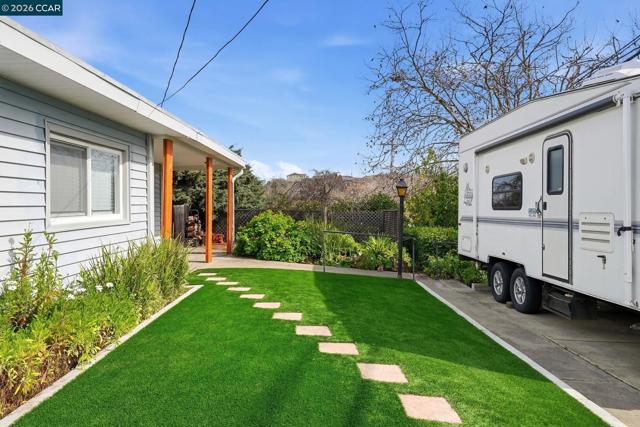 Single level living on nearly a quarter-acre lot in desirable Morello Heights. This inviting home features a warm living room with exposed beam ceilings, a cozy gas fireplace, and a large picture window overlooking the private backyard. The bright, spacious kitchen offers generous storage and opens to a private deckâperfect for morning coffee or outdoor dining. The flexible layout includes three bedrooms, two bathrooms, plus a bonus office or flex space. The primary suite features a walk-in closet and a spacious bathroom with an additional walk-in closet and convenient laundry hookups. New engineered hardwood flooring in the living room and hallway adds a fresh touch, while commercial-grade central heating and air conditioning and a tankless water heater provide modern comfort. Enjoy a private backyard with a large patio, three storage sheds, and nine fruit trees including orange, peach, apple, nectarine, grapefruit, apricot, persimmon, and kumquat. New front-yard turf and room to park a trailer or boat add extra versatility. Conveniently located near shopping, dining, and Highways 4 and 680, and zoned for award-winning Morello Park Elementary. A rare blend of space, comfort, and location.