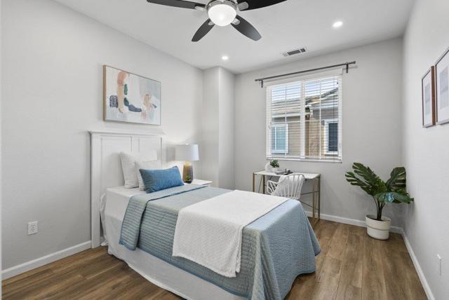 This tastefully updated property offers 1,542 square feet of thoughtfully designed living space, featuring 3 generous bedrooms and 2.5 bathrooms. The interior has been freshly painted and features luxury vinyl wood flooring throughout the main living areas. Situated in a secluded desirable safe location, this home perfectly combines modern amenities with functional design.. Key features include: Primary Suite: Includes a walk-in closet and an en-suite bathroom with a large walk-in shower. Additional Bedrooms: Two spacious rooms ideal for a home office, guests, or a growing family. Kitchen: An open-concept layout equipped with a refrigerator, stove, dishwasher, and microwave. Comfort & Security: The home is fitted with air conditioning, ceiling fans, a video security system, and a wired alarm. Convenience: Features an upstairs laundry room with a washer and dryer, an attached two-car garage, and attic space for extra storage. Exceptional modern townhome available in Hayward. Shown by appointment. Thank you