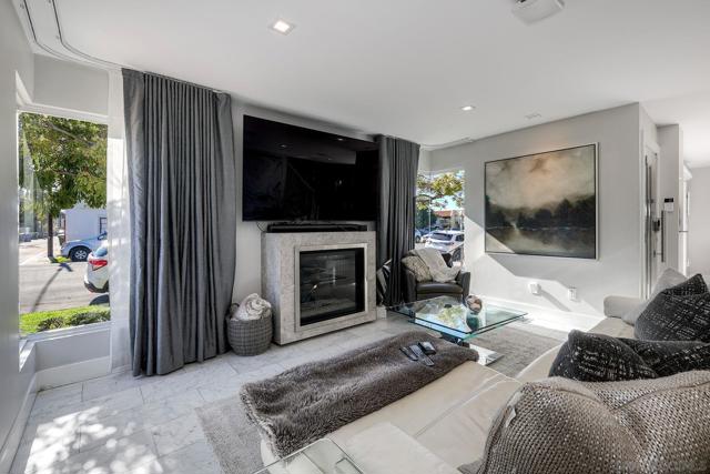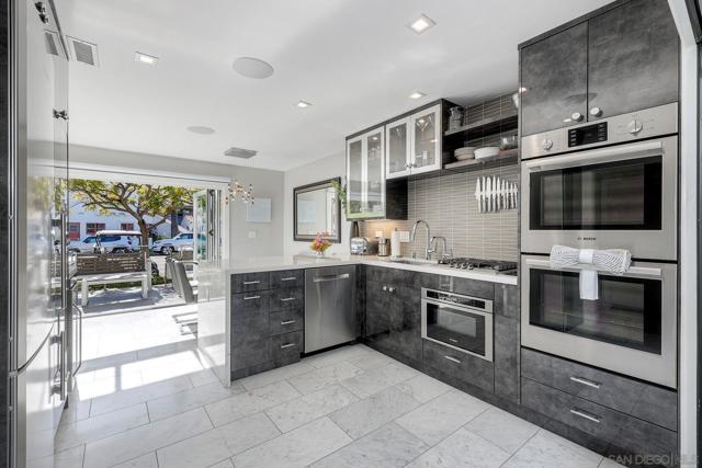 Exceptional contemporary home in a prime Coronado Village location, just three blocks to the beach and a shorter walk to downtown. Built in 2017, this 3 bed, 2.5 bath residence offers nearly 1,500 sq ft plus approx. 540 sq ft of outdoor decks, plus a serine fully finished backyard paradise, creating a seamless indoor-outdoor living. Available furnished with high-end pieces or delivered unfurnished. Includes fully owned solar. A custom steel entry opens to a light-filled interior with floor-to-ceiling corner windows, automated blinds, and a sleek fireplace. The chef’s kitchen features premium built-ins including dual wall ovens, microwave drawer, cooktop, and Liebherr refrigerator, flowing through La Cantina doors to an outdoor bar and lounge. The private yard is built for entertaining with a BBQ, outdoor fridge, ice maker, cooler, fire pit, water feature, surf shower, pet-friendly turf, ambient lighting, and an in-ground spa, all enhanced by a multi-zone Sonos system. The primary suite offers 15-foot ceilings, dramatic windows, custom drapery, and dual organized large closets. The spa bath includes a wet room with rainfall/waterfall showers, sculptural tile, heated floors, and a freestanding soaking tub. A rooftop deck adds a built-in TV, retractable awning, and privacy. Smart features include Savant, Lutron lighting, Yale lock, Rachio irrigation, soft water system, wine fridge, and three outdoor fire features. Beach bikes, chairs, and umbrellas included. Smart home upgrades include Sonos multi-zone audio, automated window shades, Yale smart lock system, Savant automation, Lutron Caseta lighting, Rachio irrigation control, soft-water system, Bosch and Liebherr appliances, wine refrigerator, outdoor refrigerator, Solaire infrared grill, Sundance spa, Toto heated/bidet toilets, and three outdoor fire features. Full beach amenities (bikes, chairs, umbrellas) are included. A rare combination of design, technology, craftsmanship, and location, this home delivers a modern, turnkey coastal lifestyle in one of Coronado’s most desirable neighborhoods.