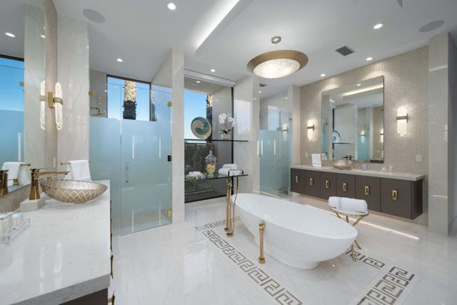 Serenely nestled within the private gated Rose Hill enclave of Las Palmas Heights sits an iconic residence, steeped in history, and displaying the epitome of timeless architectural glamour. Situated at one of the most scenic points in Palm Springs, this Buff & Hensman designed masterpiece was originally built for Jerry Zarowitz, of Caesar's Palace, and has been thoughtfully upgraded for today's technological and aesthetic tastes. Celebrities such as Frank Sinatra and friends have enjoyed the breathtaking views and complete privacy afforded within gated confines of the over 1.31ac Estate. Fast forward through 5 years of major restoration & addition with the Designer's uncompromising efforts to restore & authenticate a 1972 home to today's expectations while maintaining the property's bold architectural significance. The research & execution of the transformation is truly remarkable & will be appreciated by an aficionado of a classic property. The exquisite nature of each space is evident from the fully reimagined Primary suite; 3 guest suites; media room/office; formal dining w/custom floating 3-sided wine cellar; gourmet kitchen; sunken living room; fully equipped wet bar; new 1 bedroom guesthouse w/full kitchenette; putting green; 3 car garage w/catering kitchen. Offered 'Turnkey Furnished' (look at 'Documents' for Notable Pieces and More). Solar Lease.
