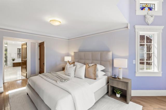 Tucked on a quiet street in Mission Hills, this Victorian-inspired residence blends timeless architectural charm with thoughtful modern upgrades. Set on a 5,000 sq ft lot, the two-level home offers 3 bedrooms and 3 full baths in the main house, plus a detached guest house/rec room with full bath and loft—ideal for guests, office, or creative space. Classic details like narrow-planked oak floors and stained-glass accents reflect the home’s character, while a remodeled kitchen and beautifully updated primary bath provide modern comfort. The exterior has been recently painted, and brand-new A/C ensures year-round comfort. Owned solar adds efficiency. The private backyard is a true retreat, featuring an in-ground heated pool and spa—perfect for relaxing or entertaining. A rare opportunity to enjoy historic charm, flexible living space, and resort-style amenities in one of Mission Hills’ most desirable and peaceful locations. Welcome to 921 Court Way, a Victorian-inspired Mission Hills residence where classic craftsmanship meets modern livability. Situated on a 5,000 sq ft lot in a particularly quiet pocket of the neighborhood, this two-level home offers architectural character, thoughtful upgrades, and exceptional flexibility. The main residence features 3 bedrooms and 3 full bathrooms, including a remodeled kitchen designed for both function and style, and a beautifully updated primary bath that creates a private retreat. Throughout the home, narrow-planked oak floors and stained-glass accents add warmth and timeless charm rarely found in newer construction. Recent improvements include exterior painting and brand-new air conditioning, ensuring both curb appeal and comfort. Owned solar enhances energy efficiency and long-term value. Outdoor living is equally compelling. The private backyard is centered around an in-ground heated pool and spa, offering a resort-like setting for quiet evenings or weekend gatherings. The lot provides usable outdoor space while maintaining privacy. A standout feature is the detached guest house/rec room complete with full bath and loft. Whether used for guests, a home office, studio, gym, media room, or extended stays, this flexible structure adds versatility and function to the property. Located in the heart of Mission Hills yet tucked away from through traffic, 921 Court Way offers convenient access to parks, dining, and neighborhood amenities while preserving a serene residential atmosphere.