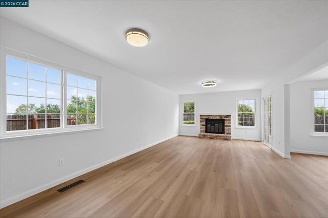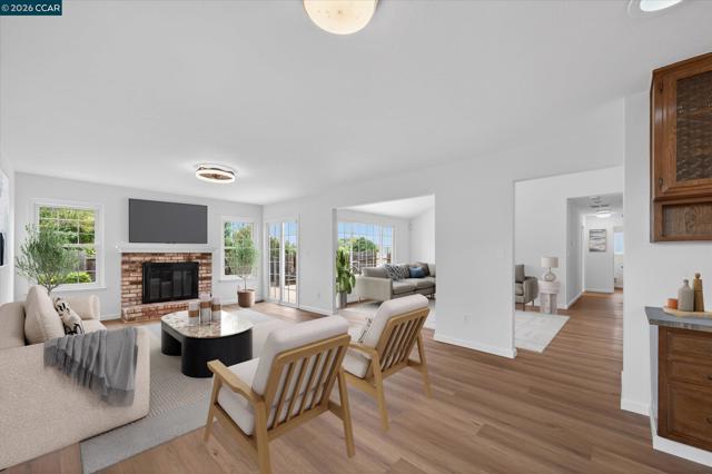 Beautifully updated single story home in a sought-after neighborhood. Step inside to experience a seamless open floor plan that effortlessly connects the dining area, living room, and family room. The kitchen overlooks the family room that features a fireplace and sliding door out to the backyard. Vaulted ceilings, brand new luxury vinyl plank flooring throughout. Fully updated bathrooms including a primary suite with a large vanity, stand up shower and spacious closets. Two other bedrooms share a hall bath with a bathtub shower and new vanity with quartz countertop. Outside, a newly constructed back deck invites you to savor open air views in complete comfort—whether enjoying your morning coffee or entertaining guests Nestled on a spacious corner lot with room for outdoor enjoyment, this turnkey home blends thoughtful luxury upgrades with timeless comfort. Perfect for those who appreciate refined living without compromise.