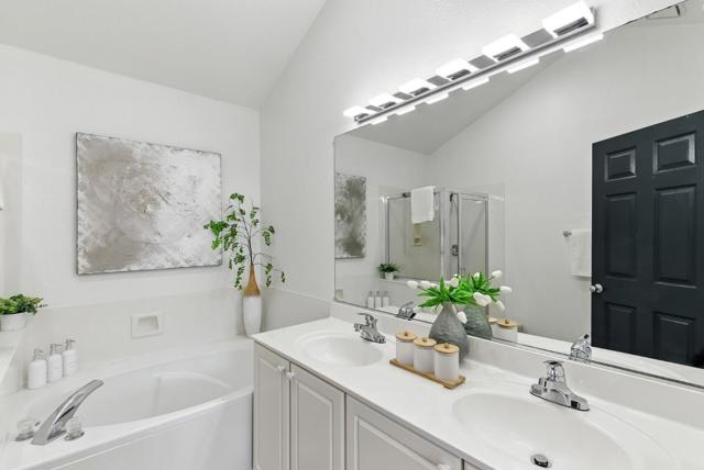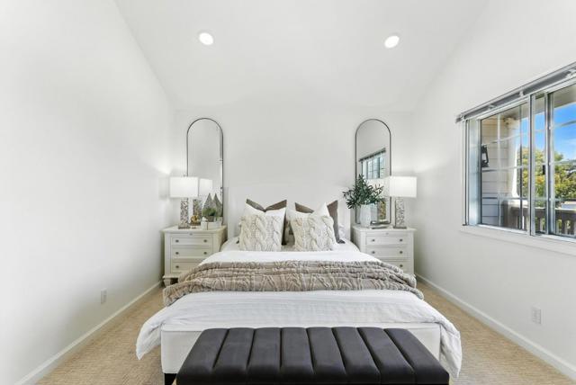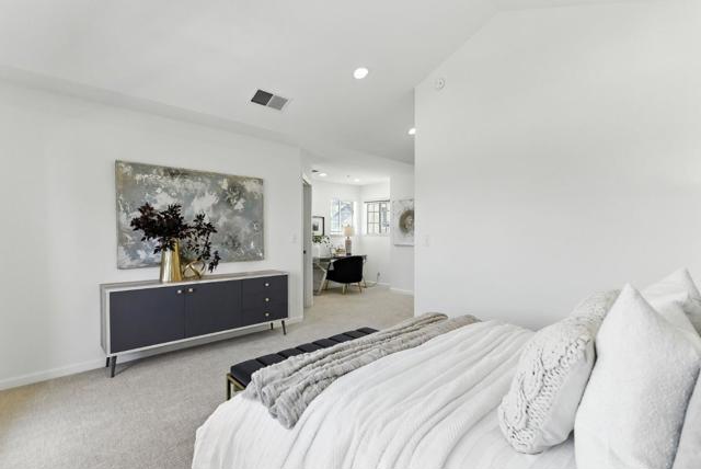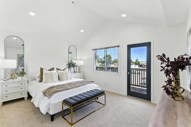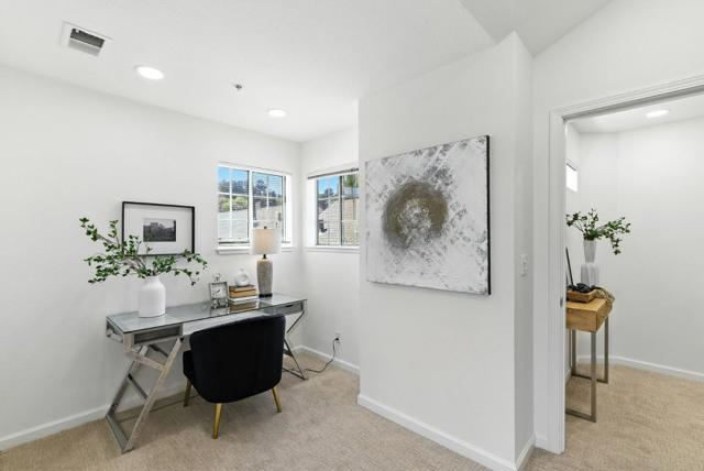 Nestled in the heart of Belmont, this bright & spacious condo-style townhome offers approx. 1,585 sq. ft. of well-designed living space. The updated kitchen showcases stainless steel appliances, sleek white cabinetry, designer backsplash, recessed lighting, & luxury vinyl flooring opening seamlessly to a generous living and dining area with soaring ceilings, a cozy fireplace, and access to a balcony. The home features three comfortable bedrooms, including a large upstairs primary retreat with vaulted ceilings, a walk-in closet with attic access, a balcony, and a versatile office or sitting nook. The en-suite bathroom offers dual sinks, both a tub and a separate stall shower. On the main level, two additional bedrooms share a full bathroom, ideal for guests or a home office setup .Enjoy the convenience of in-unit laundry room, ample storage throughout, a 1-car garage, and 1 additional assigned parking space. The Sterling Point community is beautifully landscaped with mature foliage, open green space, and a charming gazebo. Located just minutes from Twin Pines Park, Caltrain, Safeway, and major commuter routes, this home also lies within the acclaimed Belmont-Redwood Shores school district.