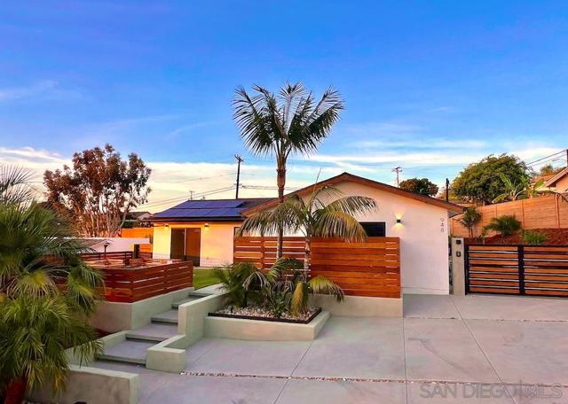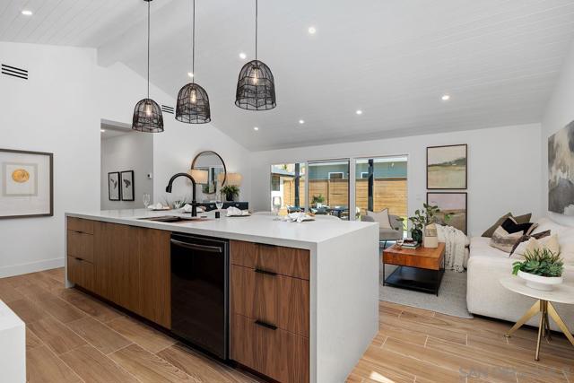 Welcome to a Cardiff by the Sea home where luxury meets coastal living. This completely upgraded four-bedroom residence offers nearly 2,000 square feet of thoughtfully designed living space, crafted with elevated finishes and attention to every detail. From the moment you step inside, you are greeted by soaring vaulted ceilings, expansive natural light, and an open-concept layout that creates both comfort and sophistication. At the heart of the home is a stunning designer kitchen featuring rich walnut cabinetry, entertainers island, high-end finishes, and a seamless flow perfect for entertaining or everyday living. Wood-grain tile flooring runs throughout, offering the warmth of hardwood with modern durability, complemented by upgraded lighting that enhances every space. With four spacious bedrooms and 2 primary suites, this home provides flexibility for families, guests, or a dedicated office. The primary suite serves as a private retreat, blending comfort, style, and functionality. The second primary suite is perfect for visitors and access to those ocean views. Adding even more value, the property includes an ADU ideal for extended family, guests, or potential rental income. The true highlight is the breathtaking ocean views that elevate everyday living into something extraordinary. This is more than just a home, it is a lifestyle upgrade, offering a turnkey coastal opportunity with high-end finishes, versatile living, and unforgettable sunset views. Welcome to a Cardiff by the Sea home where luxury meets coastal living. This completely upgraded four-bedroom residence offers nearly 2,000 square feet of thoughtfully designed living space, crafted with elevated finishes and attention to every detail. From the moment you step inside, you are greeted by soaring vaulted ceilings, expansive natural light, and an open-concept layout that creates both comfort and sophistication. At the heart of the home is a stunning designer kitchen featuring rich walnut cabinetry, entertainers island, high-end finishes, and a seamless flow perfect for entertaining or everyday living. Wood-grain tile flooring runs throughout, offering the warmth of hardwood with modern durability, complemented by upgraded lighting that enhances every space. With four spacious bedrooms and 2 primary suites, this home provides flexibility for families, guests, or a dedicated office. The primary suite serves as a private retreat, blending comfort, style, and functionality. The second primary suite is perfect for visitors and access to those ocean views. Adding even more value, the property includes an ADU ideal for extended family, guests, or potential rental income. The true highlight is the breathtaking ocean views that elevate everyday living into something extraordinary. This is more than just a home, it is a lifestyle upgrade, offering a turnkey coastal opportunity with high-end finishes, versatile living, and unforgettable sunset views.