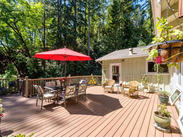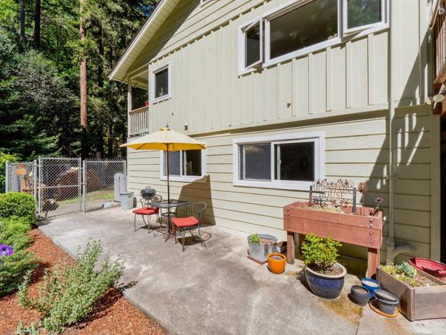 Style, Quality & Value! On a quiet street in an open clearing among towering Redwoods this home will capture your heart. This family has lived here for 44 years, steadily caring for and improving their home. The property features Marvin wooden windows, Silhouette blinds, Murano glass light fixtures, and hardwood flooring, collectively contributing to a unique and refined residence. There is a forced air furnace, plus a stone fireplace with Regency wood burning insert in the living room and a Lopi gas stove in the primary suite for added warmth. The custom kitchen has premium appliances a Viking dual fuel range, a Jenn Air refrigerator, microwave & wine refrigerator. The Cherrywood cabinets in both kitchen and utility room were hand built by a local craftsperson as well as the kitchen counters & backsplash. Two bedrooms upstairs with a full bath all remodeled and a spacious primary bedroom suite downstairs. The primary bathroom is amazing, with double sinks, granite surfaces, tile stall shower, with an incredible oversized tub. Two additional parcels are included making the total lot size is þ of an acre. Close to town but far enough away to enjoy the quiet and privacy. A must see!