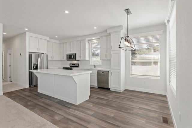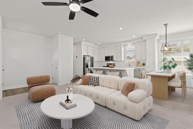 BRAND NEW 2025-built 3-bedroom, 2-bath home located in an ANY-AGE / family community! Tucked away at the end of a private driveway, this home offers a rare sense of privacy. The open-concept floor plan features 9-foot ceilings that create a bright, spacious feel throughout. The island kitchen is both stylish and functional with recessed lighting and stainless steel appliances. The primary suite includes a walk-in closet and a private ensuite bathroom with dual sinks. Additional highlights include new central A/C, ceiling fan, and a highly desirable side-by-side covered parking setup—no need to move one car to access the other. The yard is freshly landscaped and partially fenced, providing added privacy and outdoor enjoyment. Rancho San Marcos Park offers excellent amenities including a clubhouse, pool, spa, and ample guest parking. Ideally located across from Richland Elementary, this home is within the San Marcos School District and walking distance to the newly remodeled Richland Elementary School. Space rent is $1,500 per month + utilities. Note: Some photos representing this listing have been virtually staged.